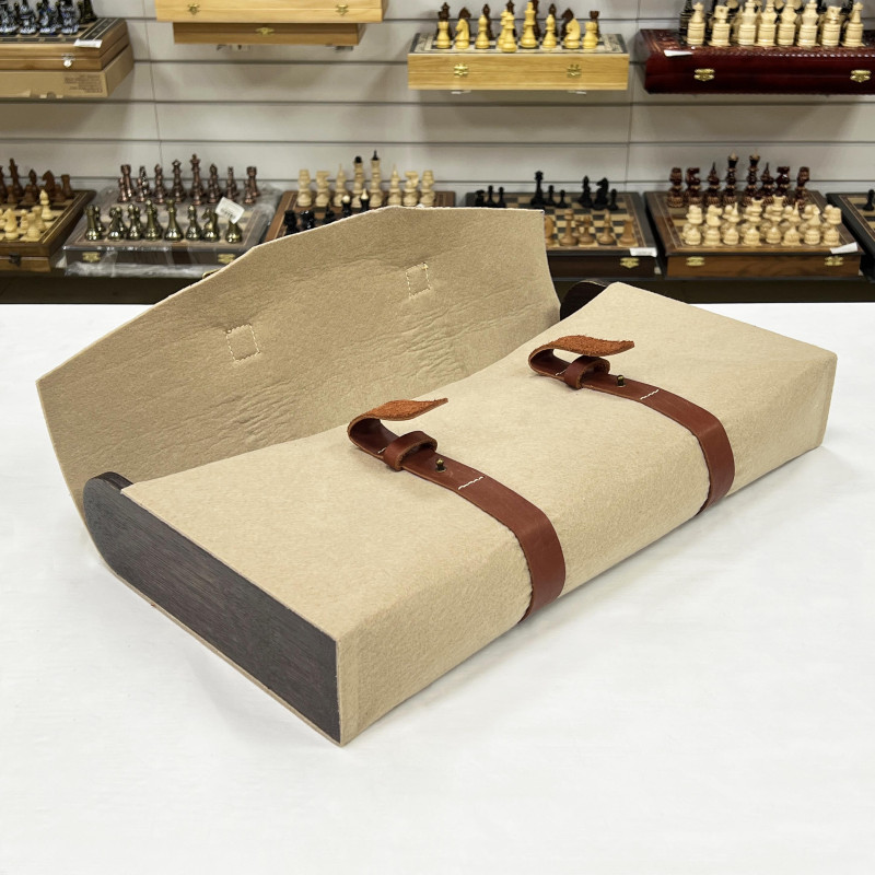 Чехол для шахмат ручной работы. Основной материал - фетр, ручка и боковые вставки - дерево каштан, лямки - натуральная кожа.