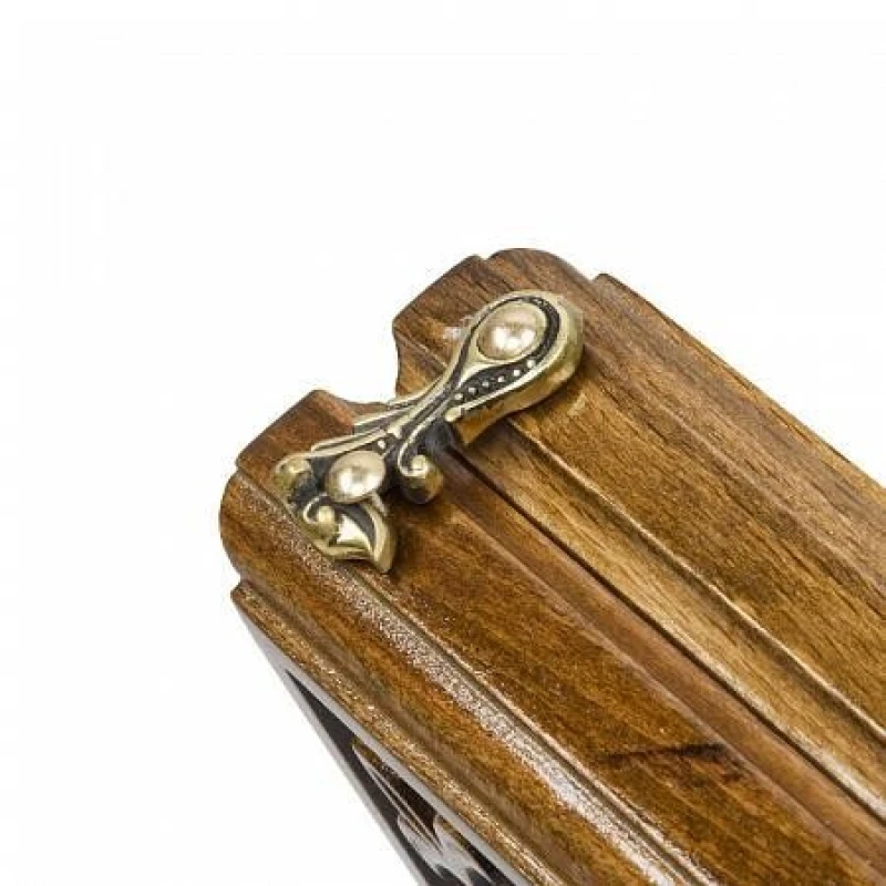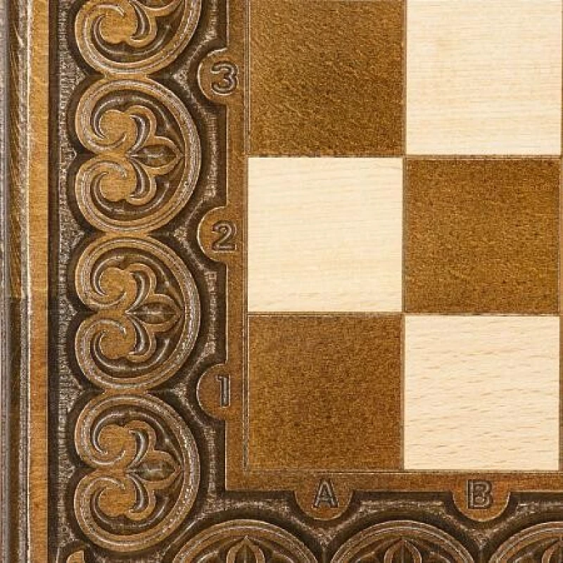 Что в коробке? Доска; чехол. Средняя шахматная доска «Лотос», сделанная из высококачественной натуральной древесины бука – это действительно искусное творение талантливого мастера, которое будет рад иметь в своей коллекции каждый ценитель классических настольных игр. Хорошая шахматная доска – это не только статусно и презентабельно, но и надежно. Данная модель долговечна и прослужит долгие годы даже при активном использовании. Техника маркетри, использованная в инкрустации доски, позволяет рассмотреть натуральные оттенки благородной древесины, а изящный замысловатый узор привлекает и впечатляет мастерством исполнения. Доска, оснащенная медной фурнитурой, покрыта защитным лаком. Внутренняя ее часть устлана мягким бархатным материалом, поэтому сложенные туда фигуры и фишки будут храниться надежно, не повреждаясь.