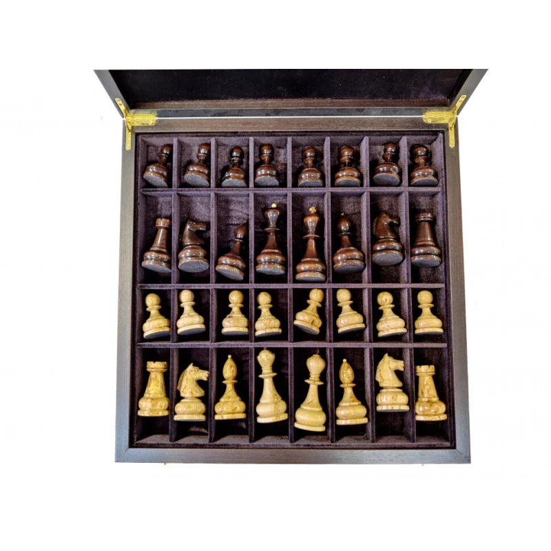 Внутри ларца предусмотрены деревянные ячейки для удобного и надежного хранения фигур.