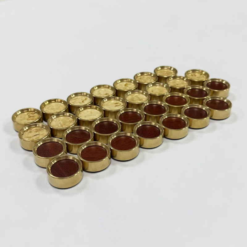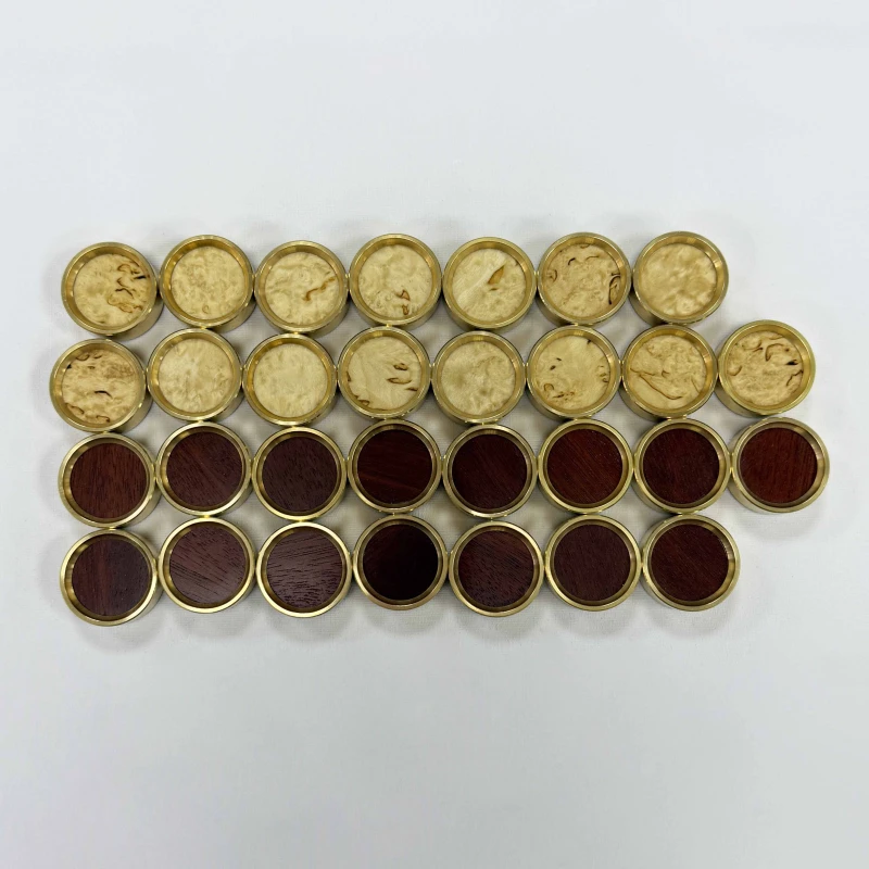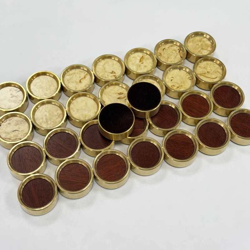 Фишки для нард и шашек эксклюзивные латунные карельская береза/красное дерево 28 мм