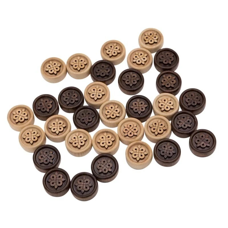 - Количество фишек:16 светлых, 16 темных