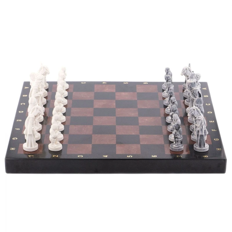 Настольные шахматы "Средневековье" камень лемезит и змеевик 40х40 см размером доска 40х40х3 см, клетка 4,5х4,5 см, высота фигур 5,2-9,5 см и весом 10000 г. Мраморные шахматы имеют классический дизайн и вдобавок они сделаны вручную из безопасных и экологичных материалов.