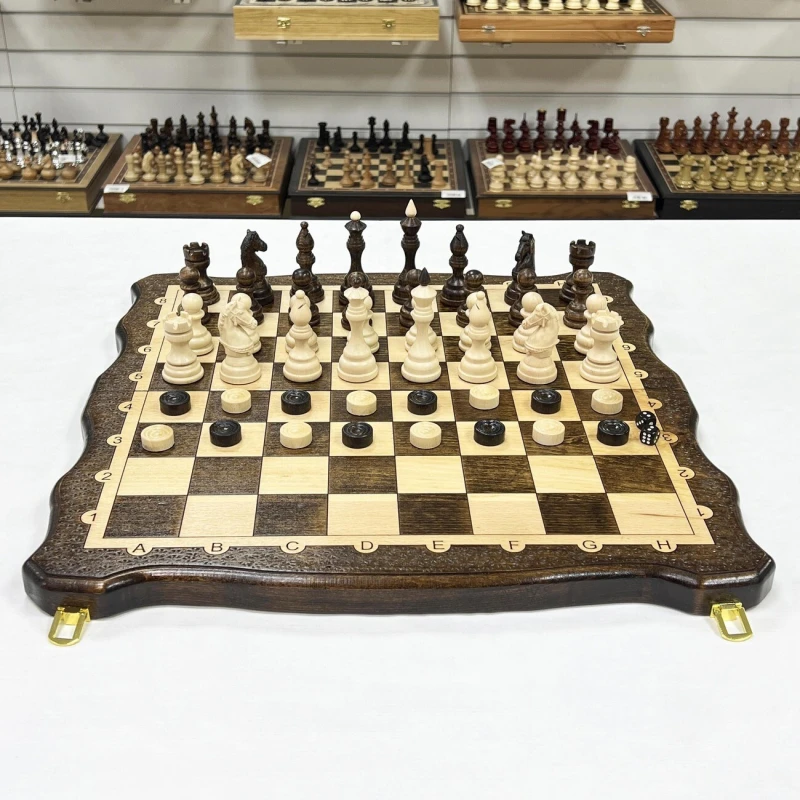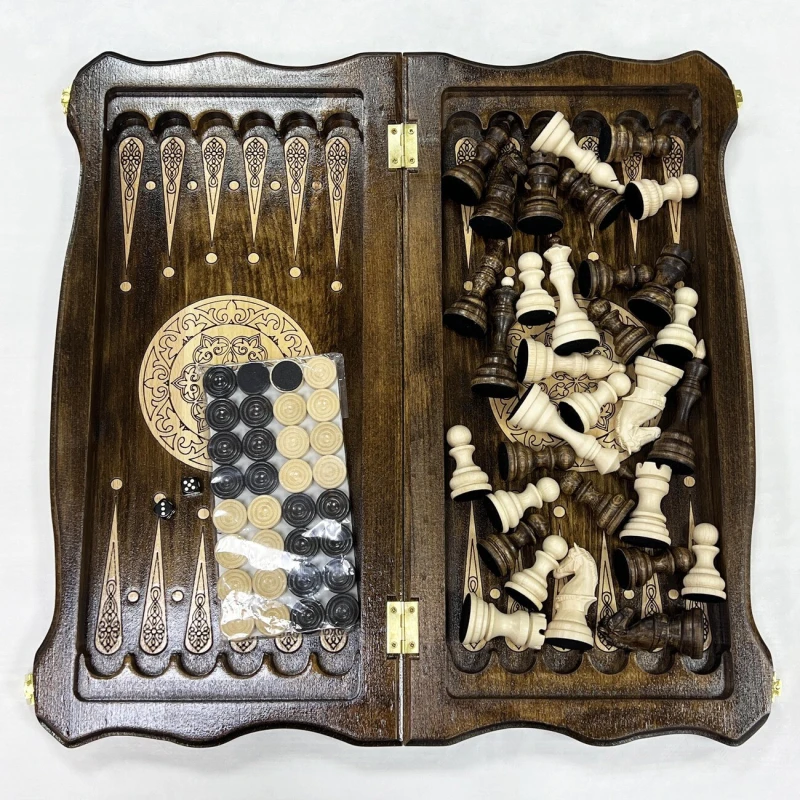 Набор 3 в 1 ручной работы, объединяющий в себе три любимые настольные игры: шахматы, нарды и шашки. Эта уникальная вещь станет не только источником увлекательного досуга, но и изысканным украшением вашего интерьера.