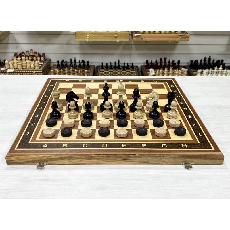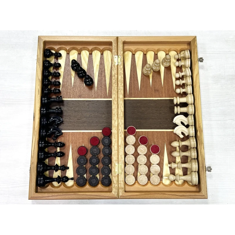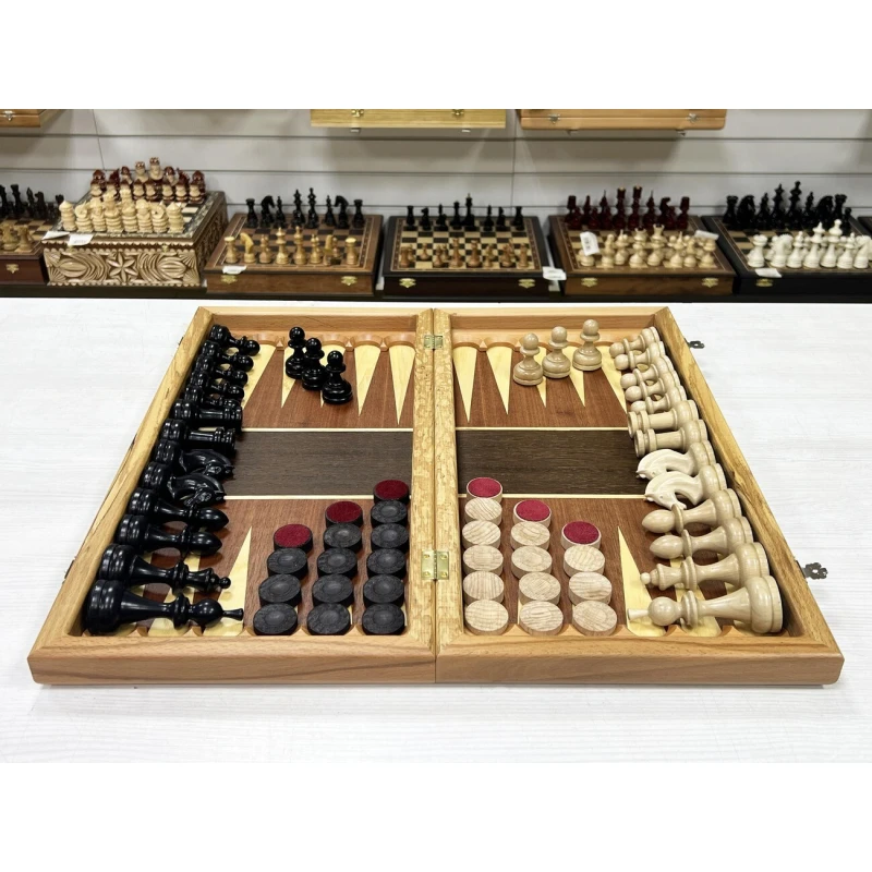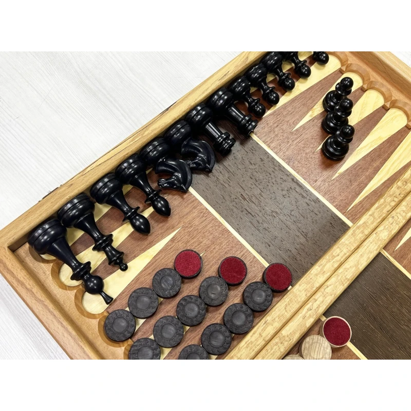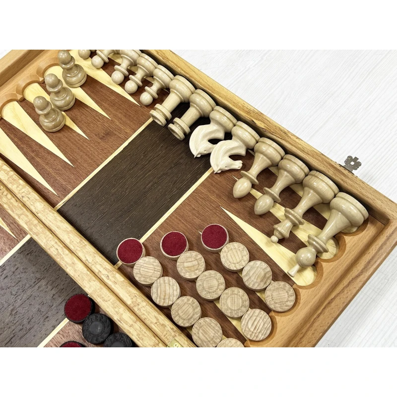 Набор 3 в 1 шахматы-нарды-шашки из красного дерева с фигурами и фишками из бука в комплекте