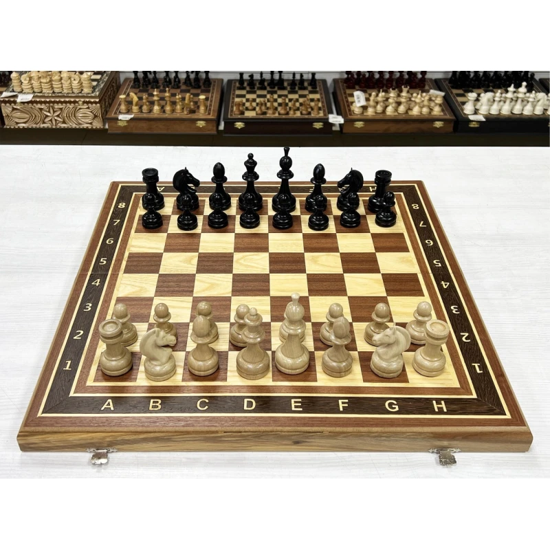 Набор 3 в 1 шахматы-нарды-шашки из красного дерева. Размер в разложенном виде 50 х 50 см, размер клетки 5 см. Шахматная доска имеет качественную и прочную фурнитуру. Во внутренней части шахмат имеется поле для игры в нарды. Фигуры в комплекте выполнены из дерева бука, лакированы, с утяжелением. Фигуры имеют подклейку основания из фетра, для предотвращения царапин на игровом поле. Фишки в комплекте так же имеют подклейку и выполнены из дерева бука.