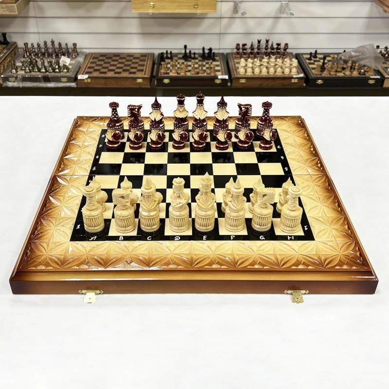 Купить деревянные шахматы, подарочные шахматы, эксклюзивные шахматы ручной работы можно в наших магазинах в Москве и в Санкт Петербурге, либо заказать доставку в нашем интернет магазине по всей России. Получить консультацию наших специалистов можно по телефону + 7 (495)-662-99-14