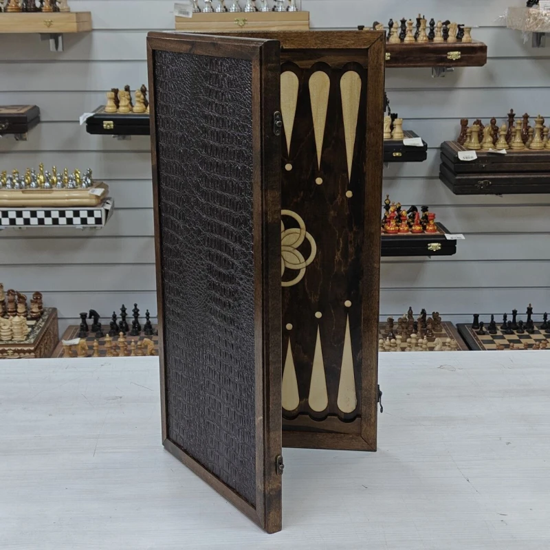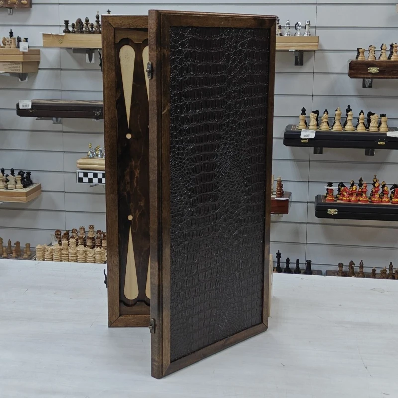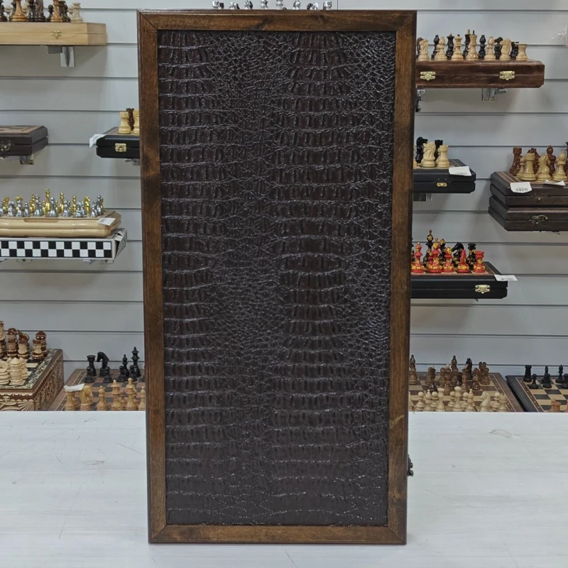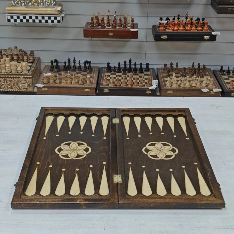 Длинные нарды выполнены из дерева и экокожи, в комплекте фишки из бука с диаметром 3см. Размер нард 60х60см в разложенном виде. На лицевой и тыльной стороне нард вставка из экокожи коричневого цвета. Нарды отправляем в текстильном чехле. Нарды станут отличным подарком для ваших родных и близких, для взрослых и детей! Размер доски в сложенном виде 60 на 30 см. Подарочные нарды большого размера укомплектованы игральными костями и фишками с подклейкой из ткани. Ручная работа. Сделаны в Армении.