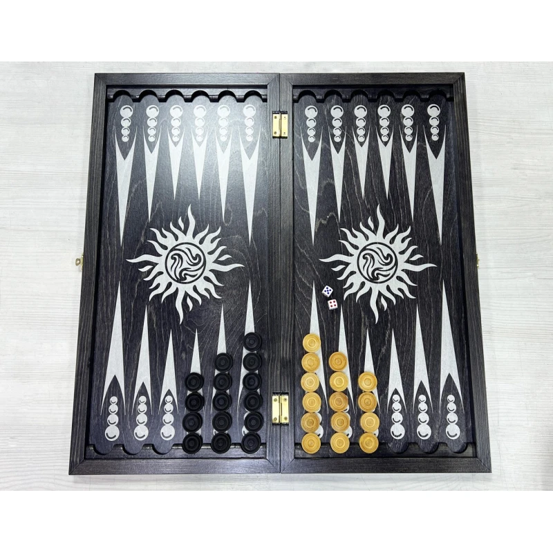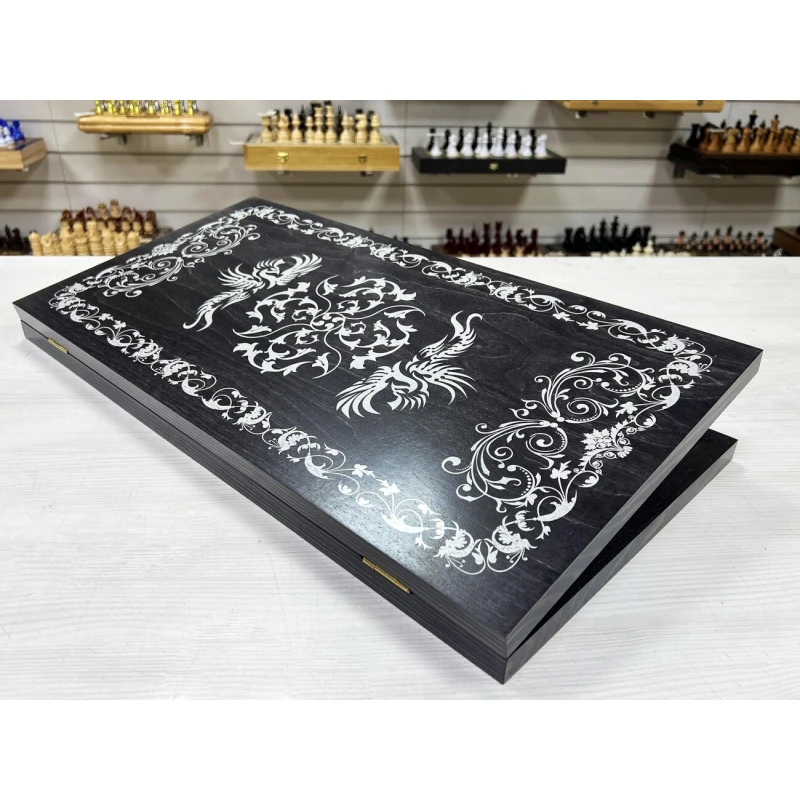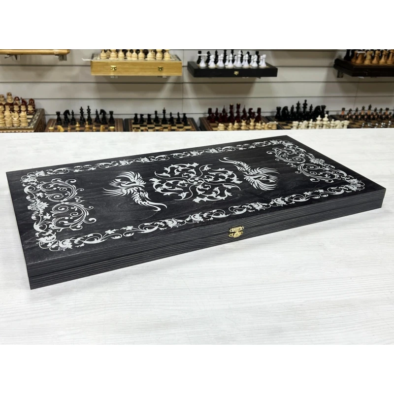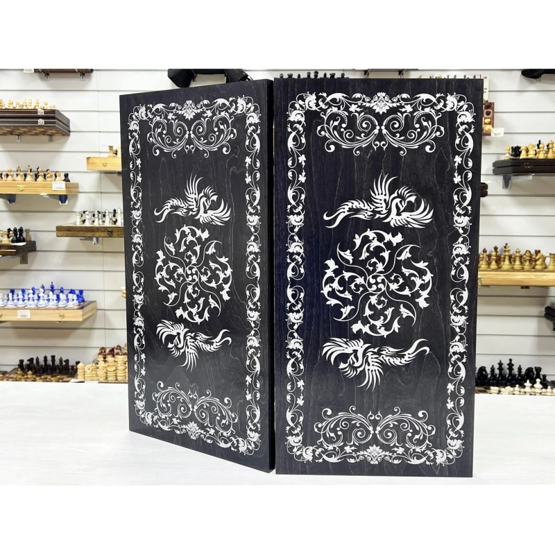Нарды деревянные с восточным узором, с фишками и кубиками в комплекте