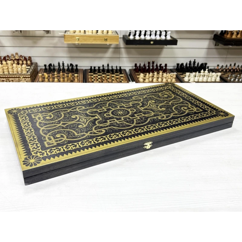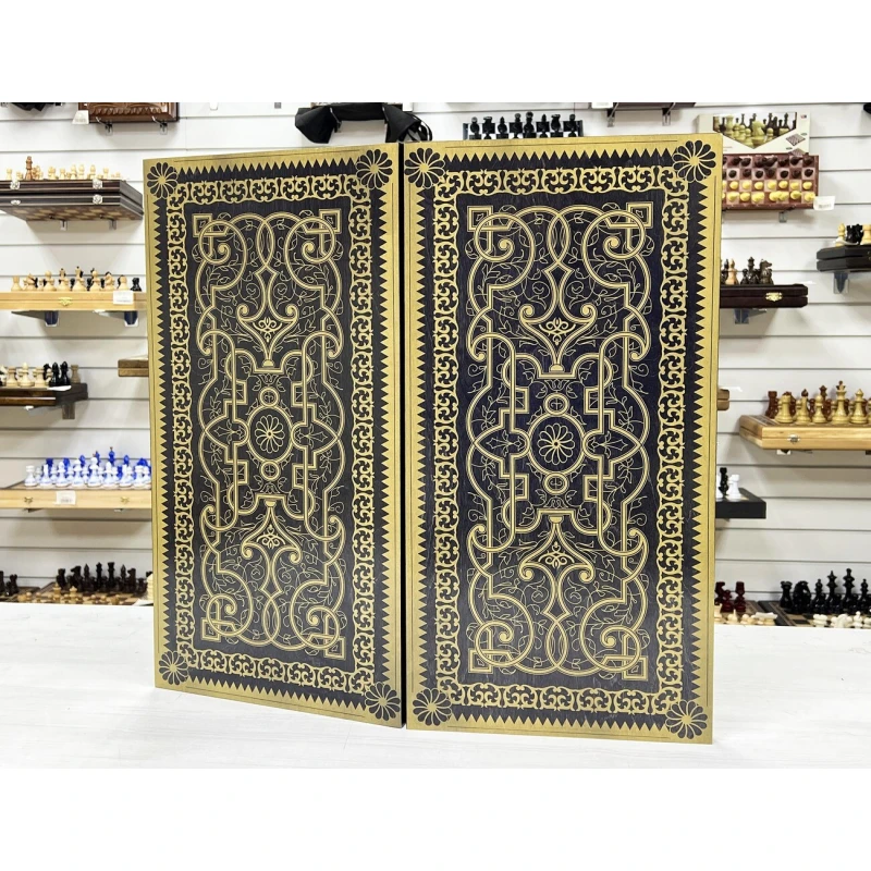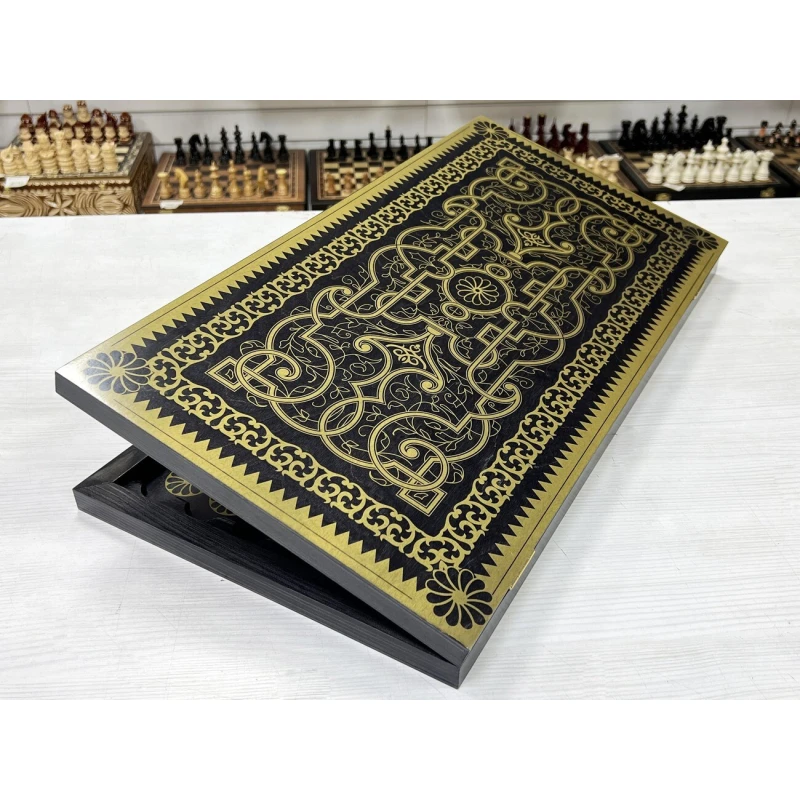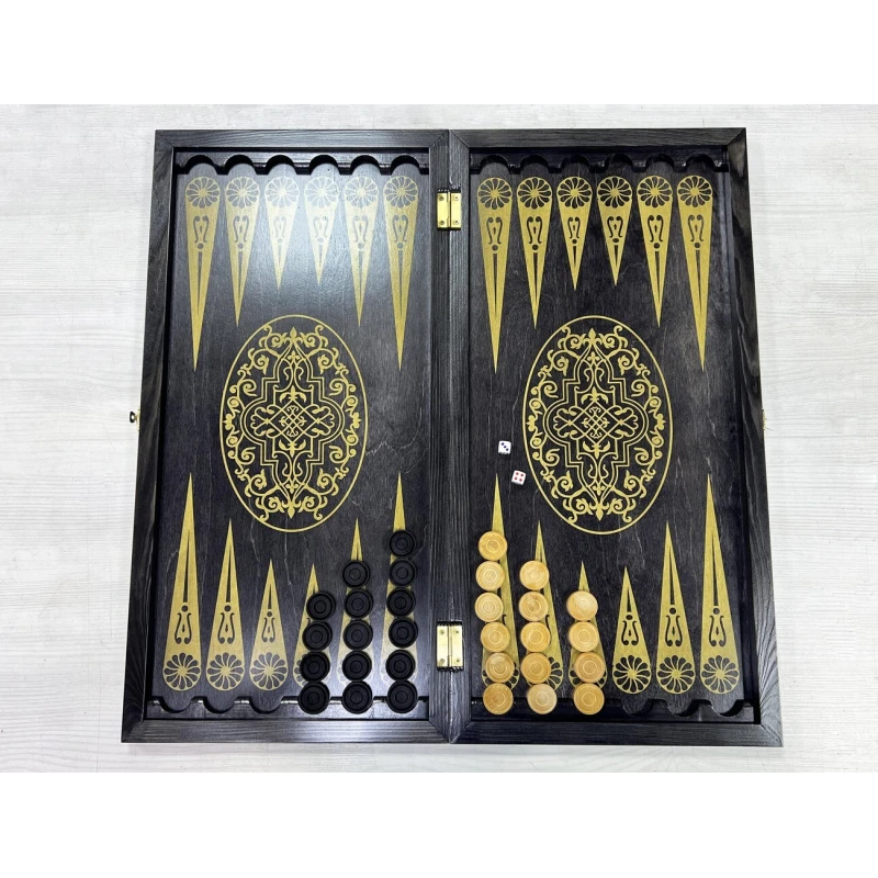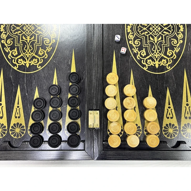 Нарды деревянные с восточным узором, с фишками и кубиками в комплекте