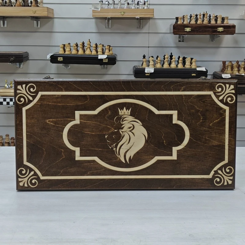 Длинные нарды выполнены из дерева, в комплекте фишки из бука с диаметром 3см. Размер нард 60х60см в разложенном виде. На лицевой стороне нард изображение Льва с короной. Нарды станут отличным подарком для ваших родных и близких!