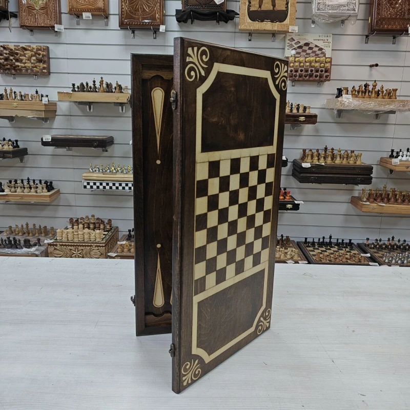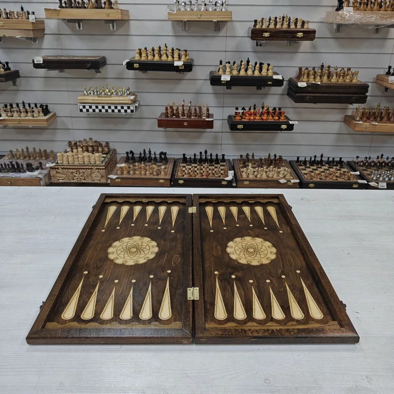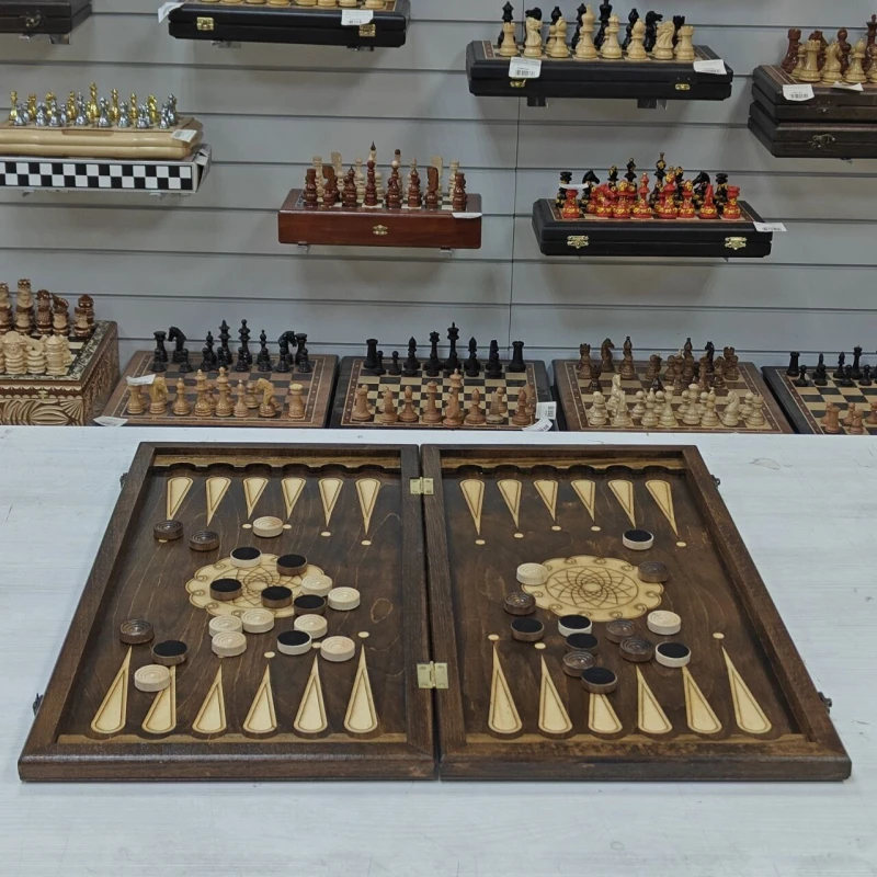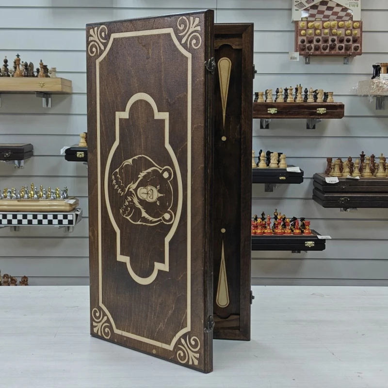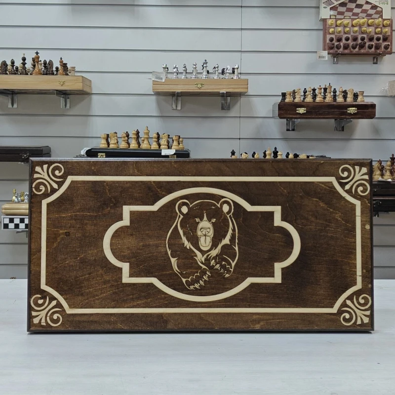Длинные нарды выполнены из дерева, в комплекте фишки из бука с диаметром 3см. Размер нард 60х60см в разложенном виде. На лицевой стороне нард изображение медведя. Нарды отправляем в текстильном чехле. Нарды станут отличным подарком для ваших родных и близких!