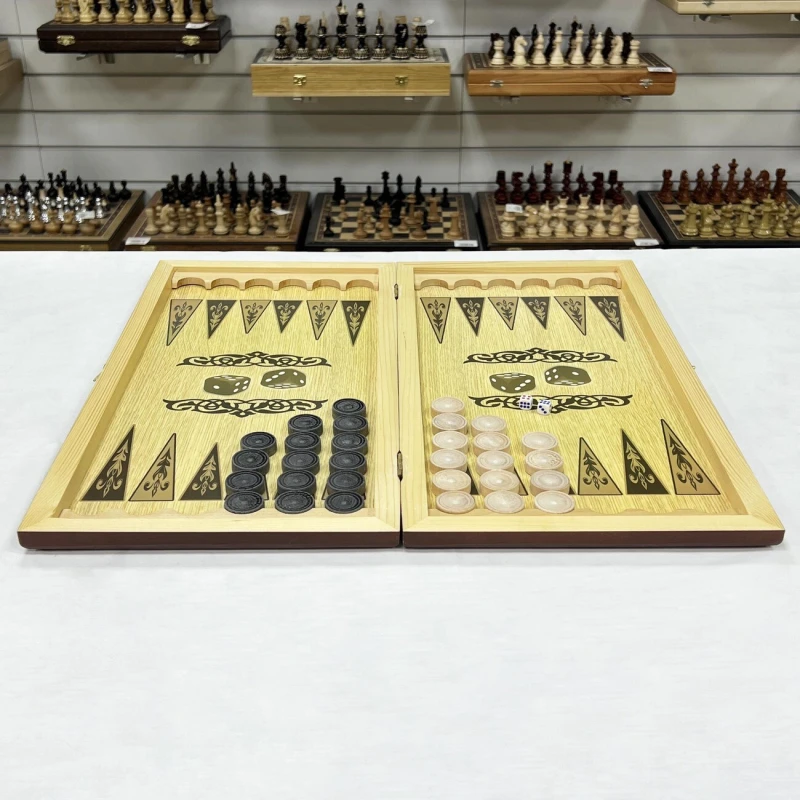 В комплекте игральные кости и фишки для нард
