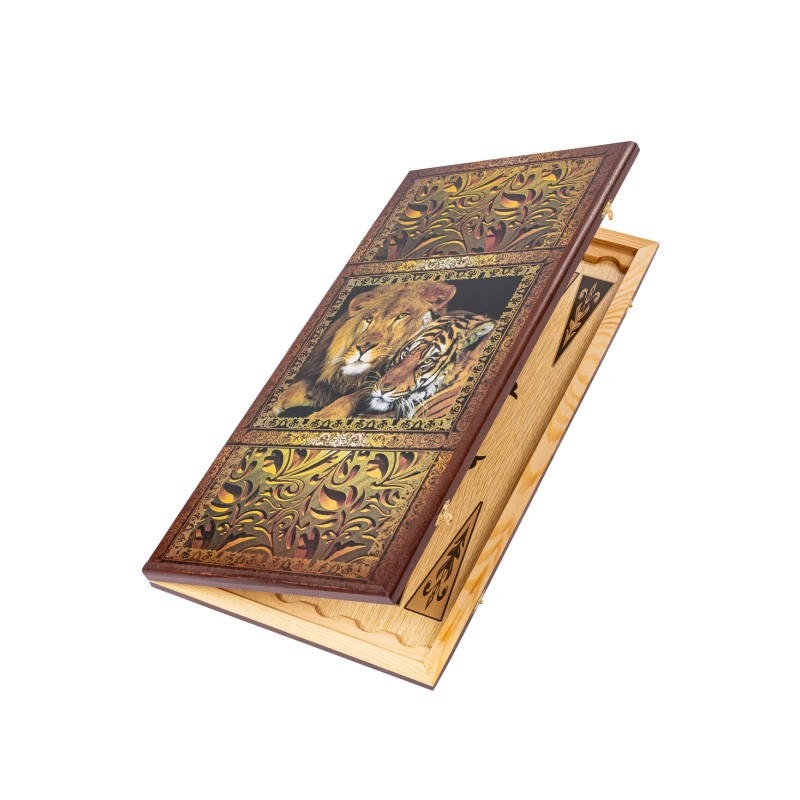 Классические деревянные нарды. с изображением Льва и Тигра.
