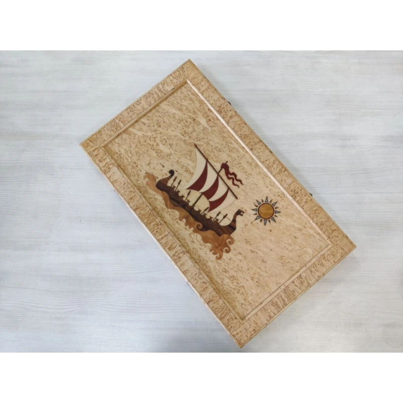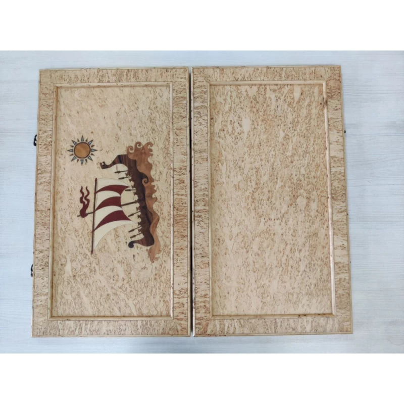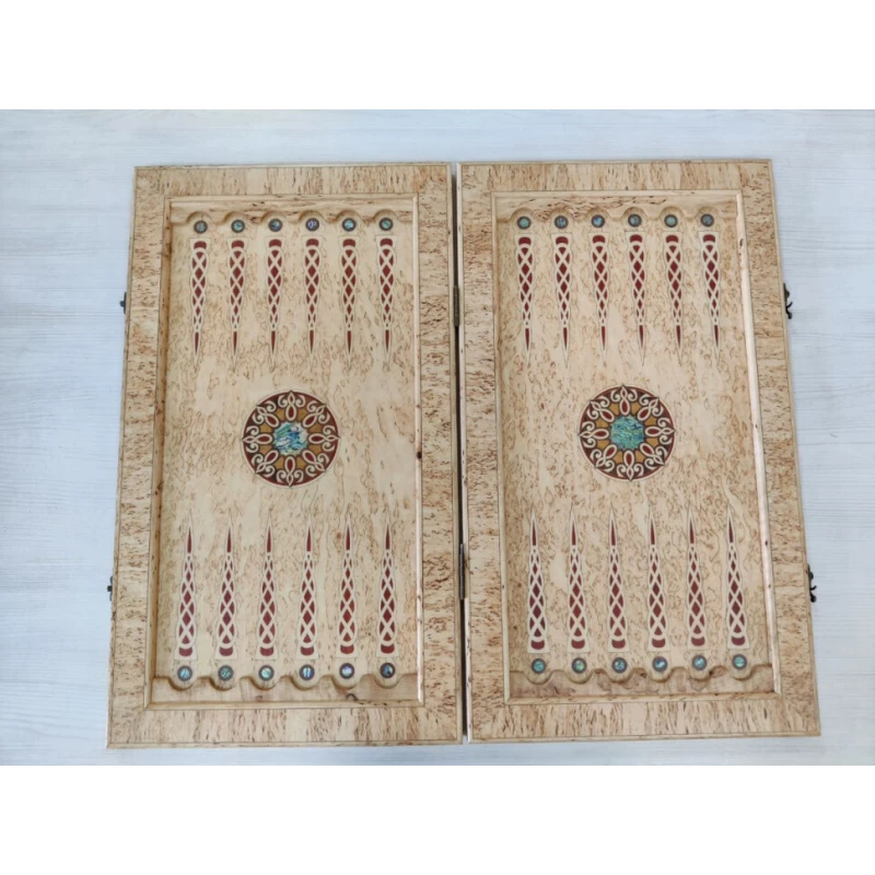 Эксклюзивные нарды ручной работы из карельской березы. Размер доски в разложенном виде 64 на 74 см. Внутри доски рисунок сделан в технике маркетри. Внутри доски есть вставки из натурального перламутра. Доска закрывается на 2 замочка. Отличный вариант подарочных нард. Сделаны в России.