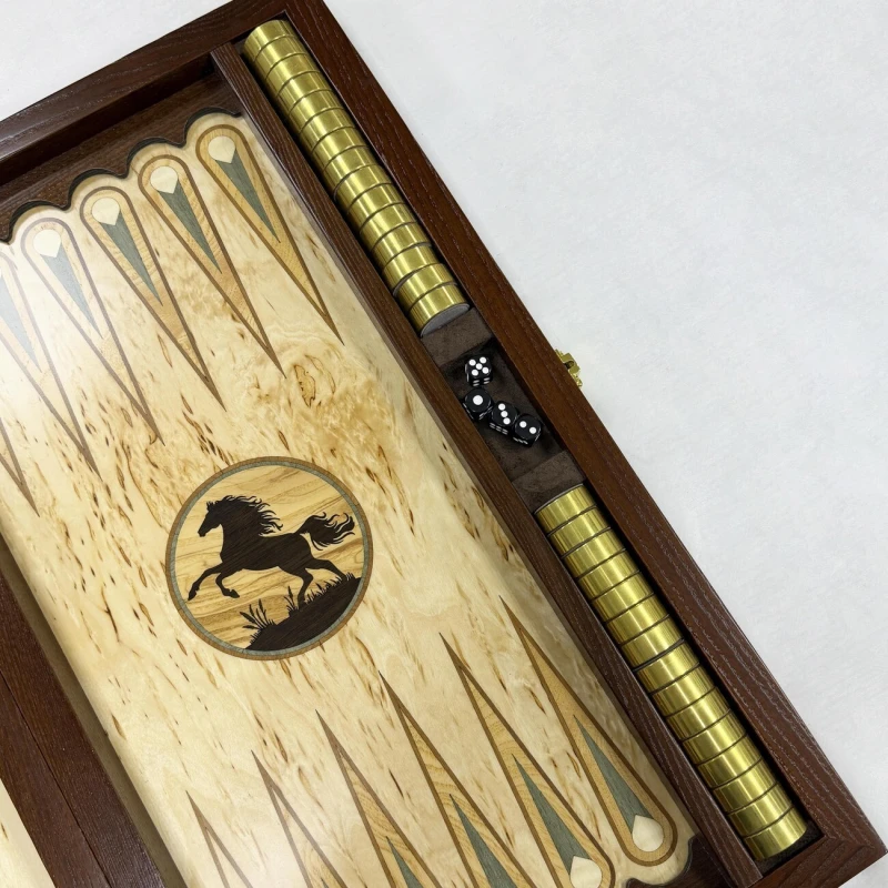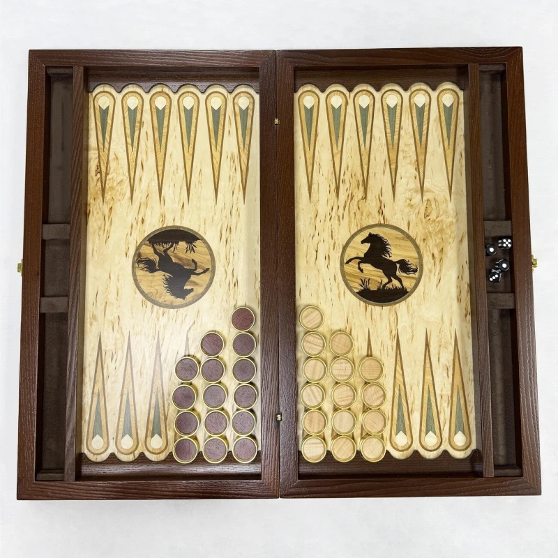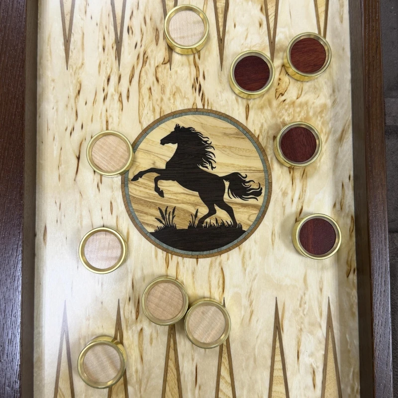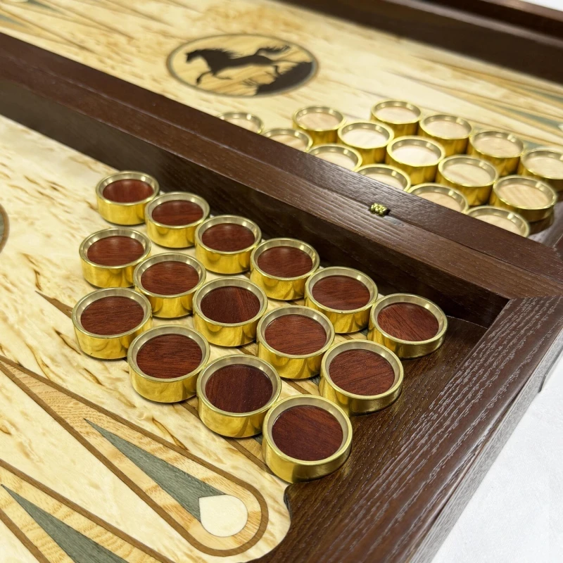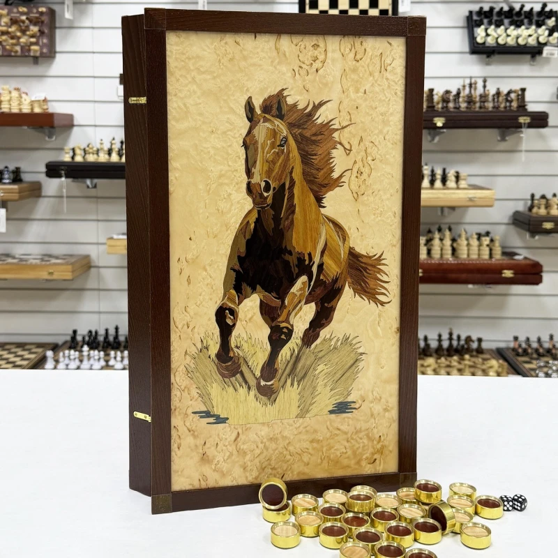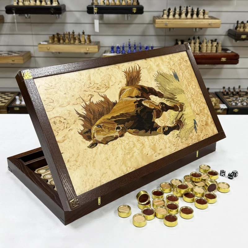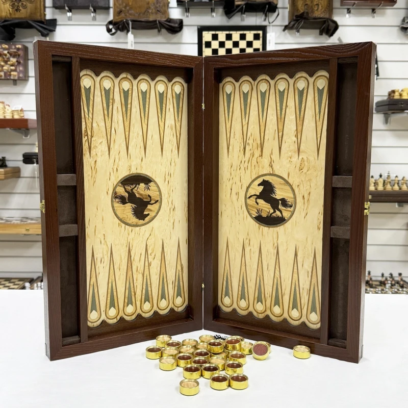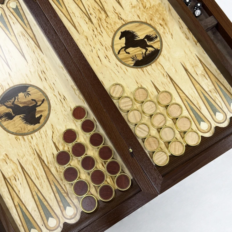 Нарды эксклюзивные из карельской березы Мустанг с инкрустацией 50 см