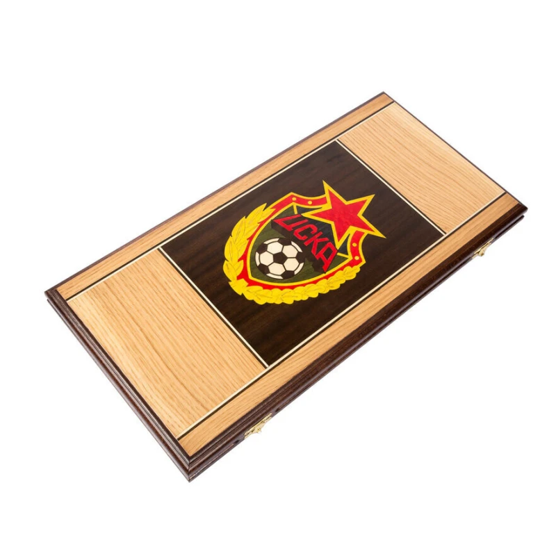 Классические нарды с гербом ФК ЦСКА. Нарды выполнены в стиле маркетри из ценный пород дерева. Размер доски в развернутом виде 60 на 60 см. В комплекте игральные кости и фишки.