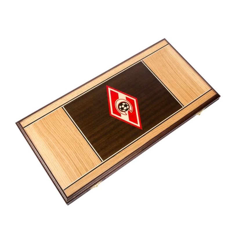 Классические нарды с гербом ФК Спартак. Нарды выполнены в стиле маркетри из ценный пород дерева. Размер доски в развернутом виде 60 на 60 см. В комплекте игральные кости и фишки.