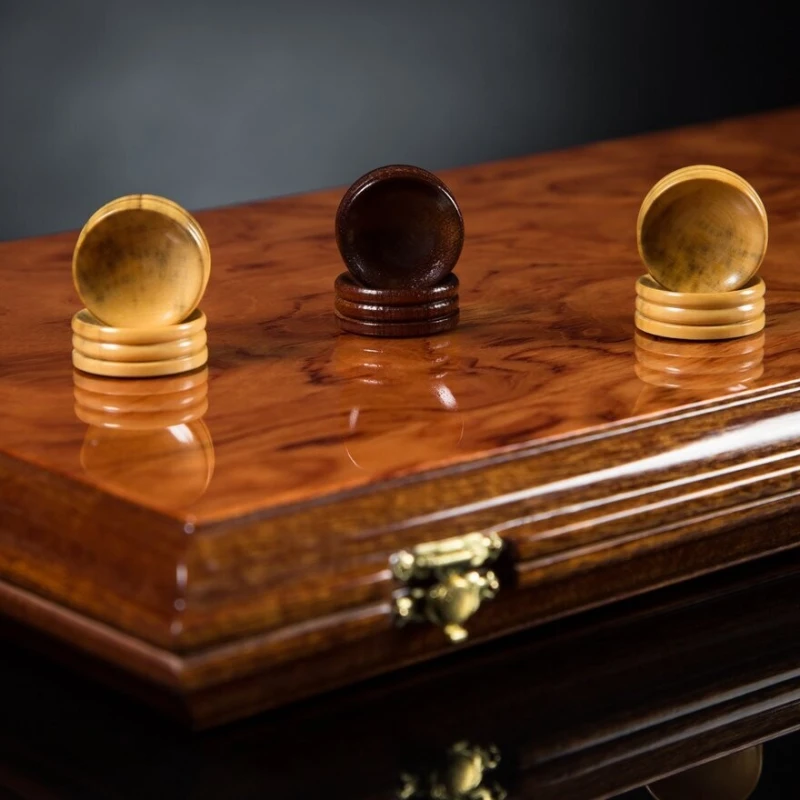 шашки светлые - колхидский самшит, темные - красное дерево сапеле, подклеены замшей.
