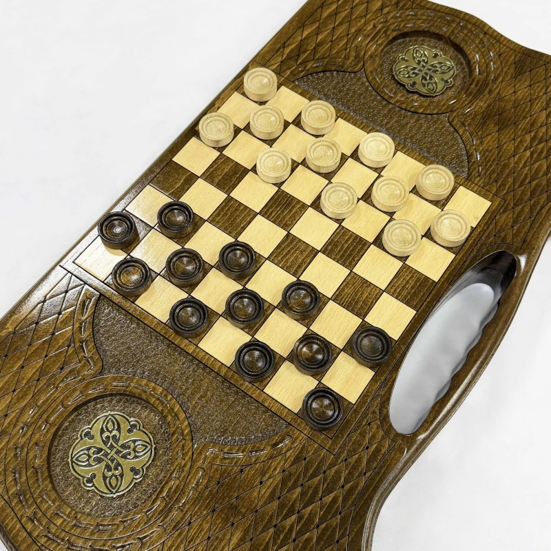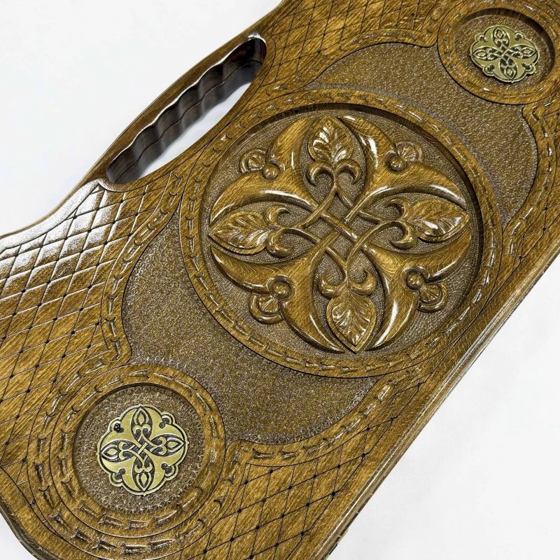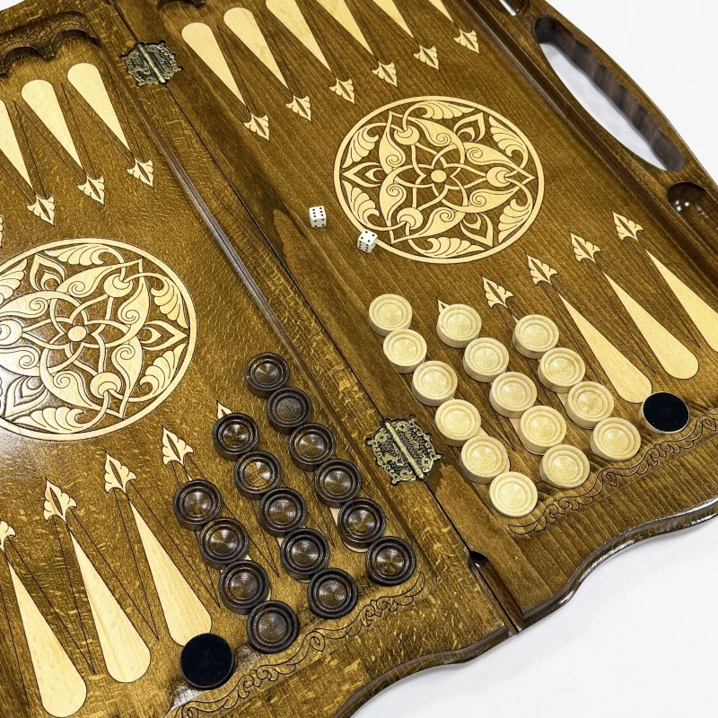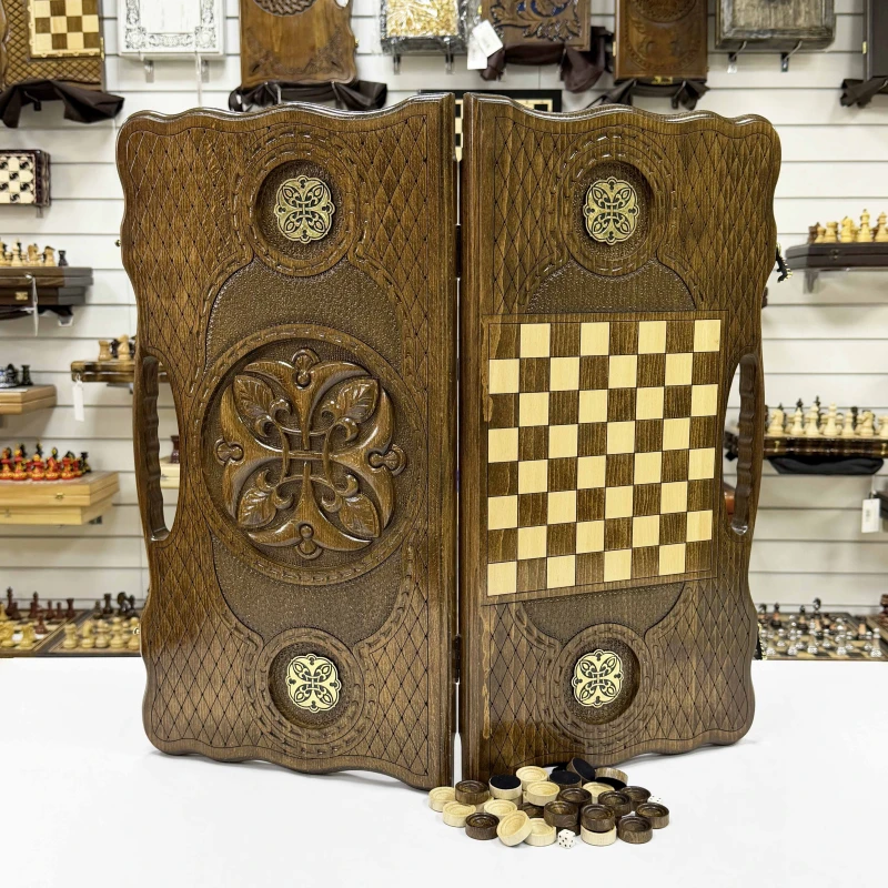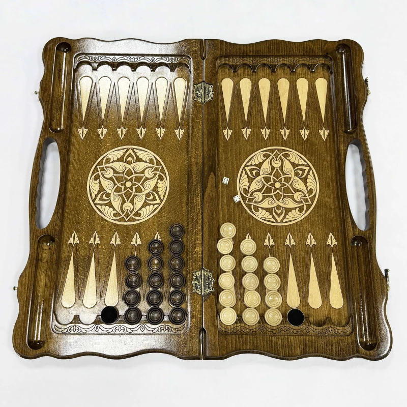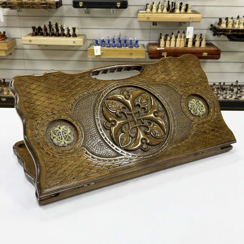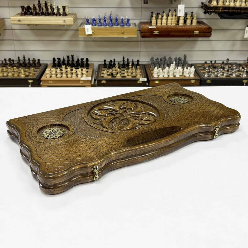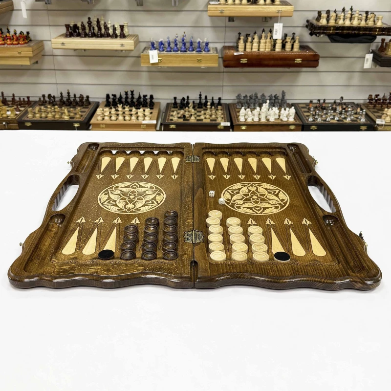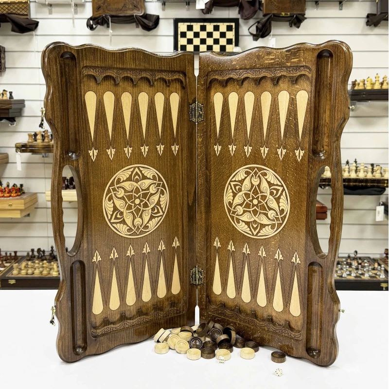 Нарды из массива бука с металлическими вставками с ручкой 60 см