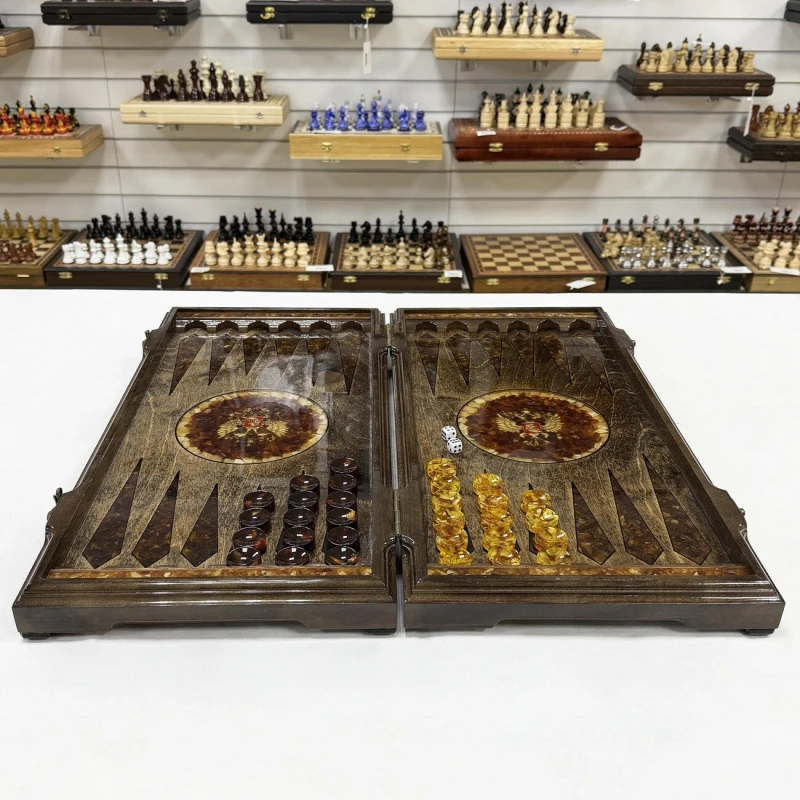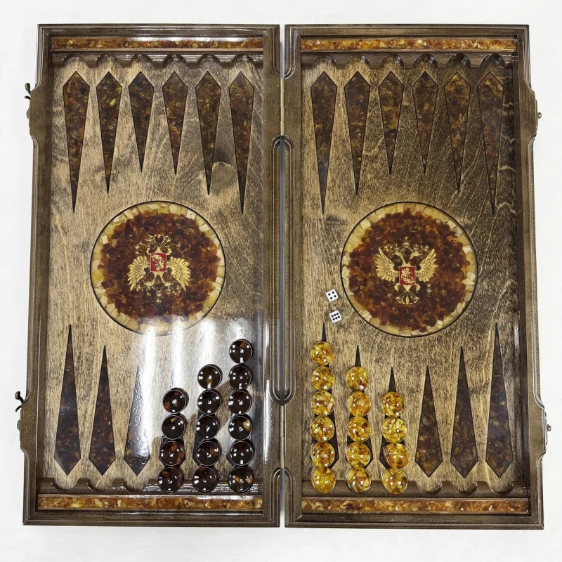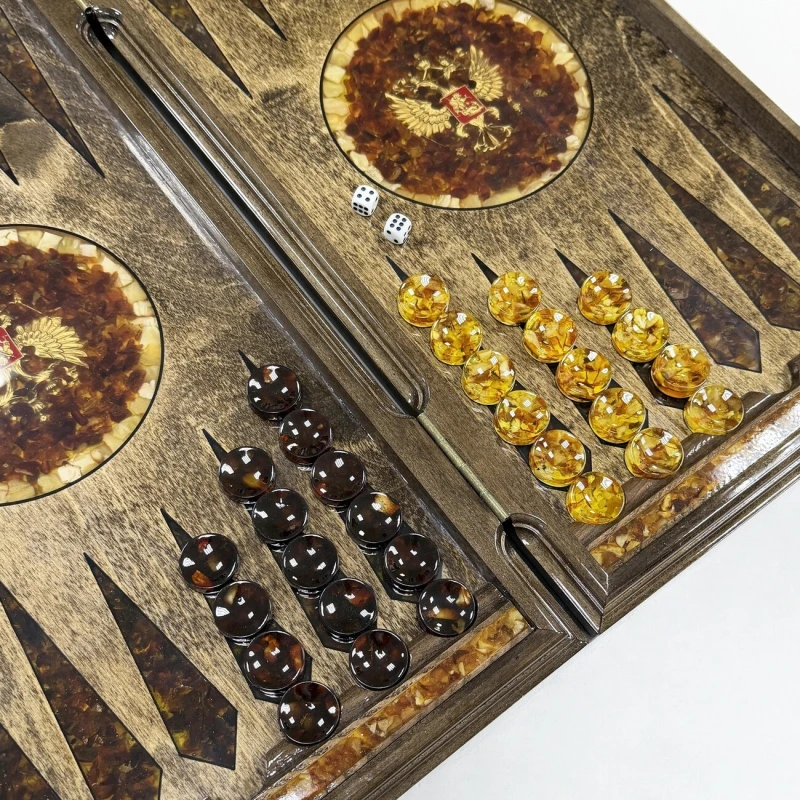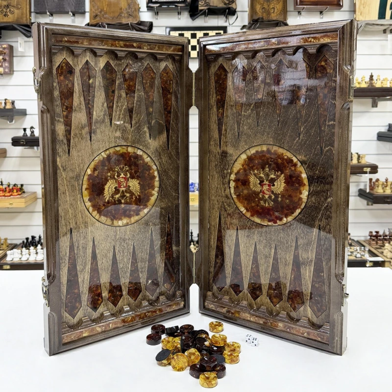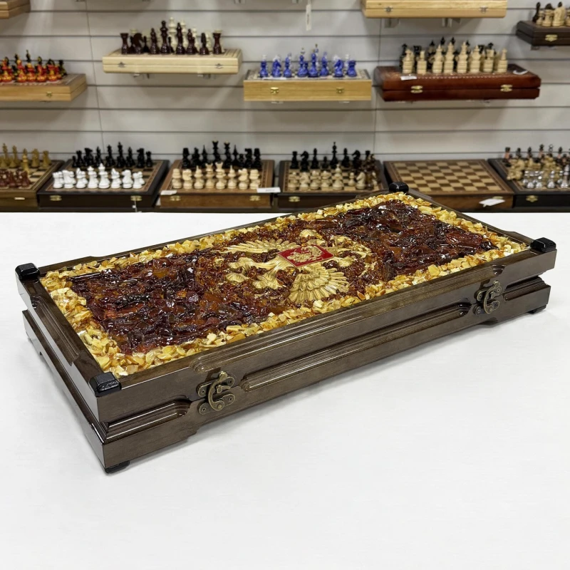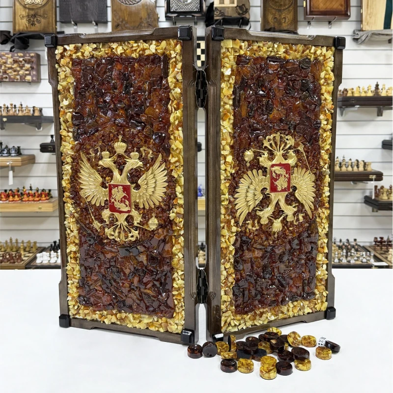 Нарды из янтаря Герб РФ эксклюзивные большие 60 см