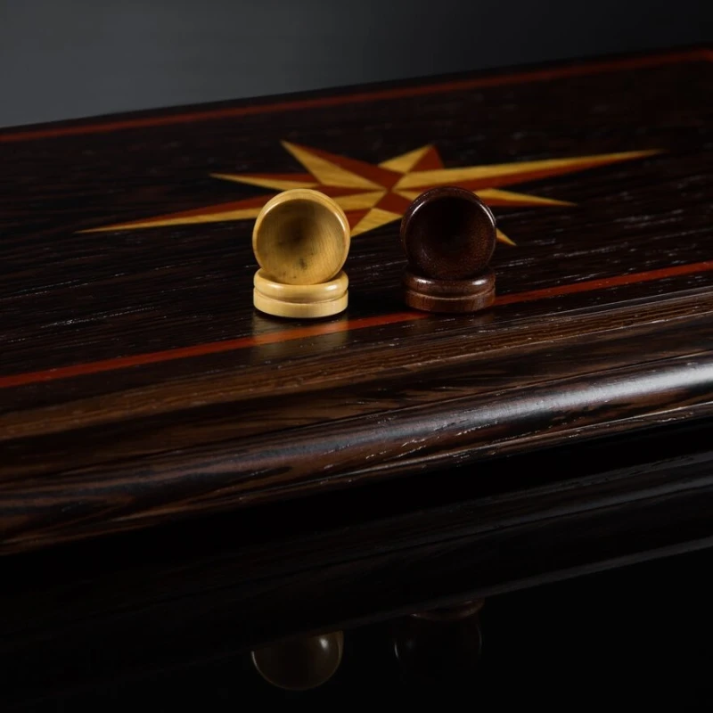 шашки светлые - колхидский самшит, темные - красное дерево, подклеены замшем.