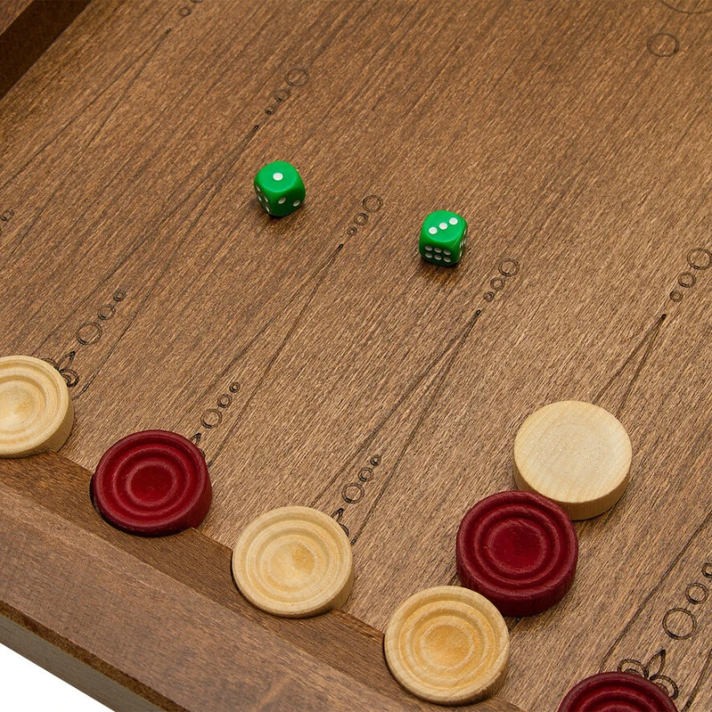 Отличные нарды с вставкой из экокожи с лицевой стороны. Внутри доска выполнена в классическом стиле, что позволяет удобно играть в длинные и короткие нарды.