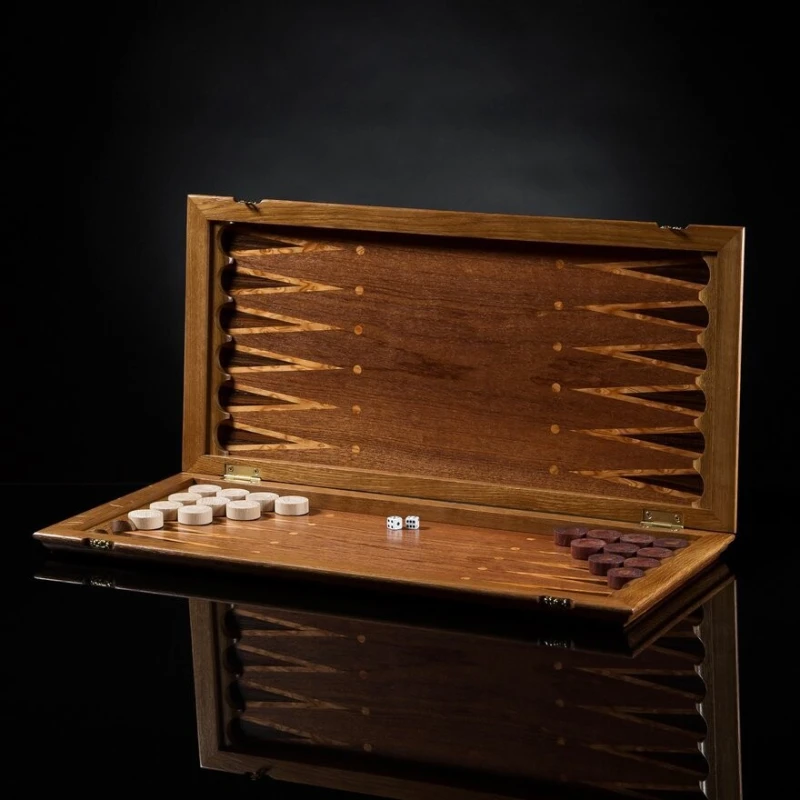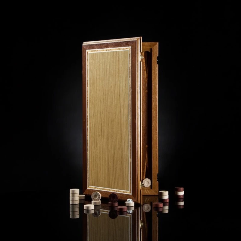 Множество слов сказано о том, что для создания неповторимого образа важны детали. Декоративное покрытие книжного переплета называется оклад. Древнейшие книжные оклады, придающие изделию уникальность, выполнялись из необычных материалов, например, слоновой кости или металла. Нарды "Оклад" мы создали из натуральных ценных пород дерева. Мозаичный рисунок исполнен в технике маркетри, а каждая деталь игрового набора изготовлена вручную.