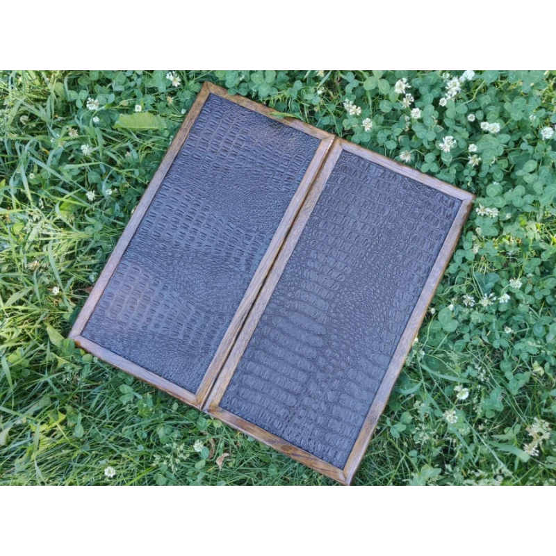 Деревянные нарды с чехлом. Размер доски в разложенном виде 50 на 50 см. В комплекте чехол, игральные кости и фишки для нард. Каркас доски сделан из массива дуба, лицевые стороны сделаны из экокожи. Доска закрывается на замочек. Подойдут в подарок для взрослых и детей. Фишки с подклейкой.