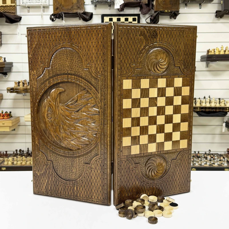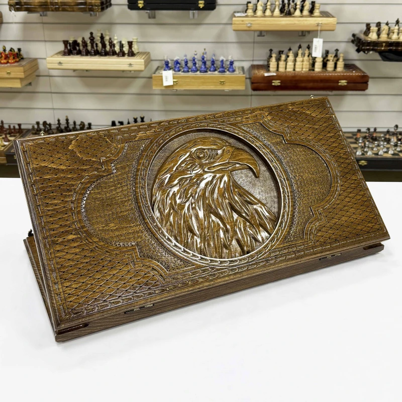 Нарды подарочные из массива бука Голова орла премиум 60 см