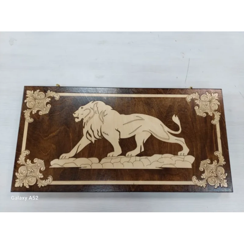 Большие подарочные деревянные нарды с рисунком в виде Льва, выполненного с помощью гравировки.