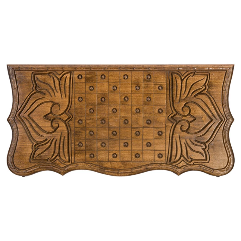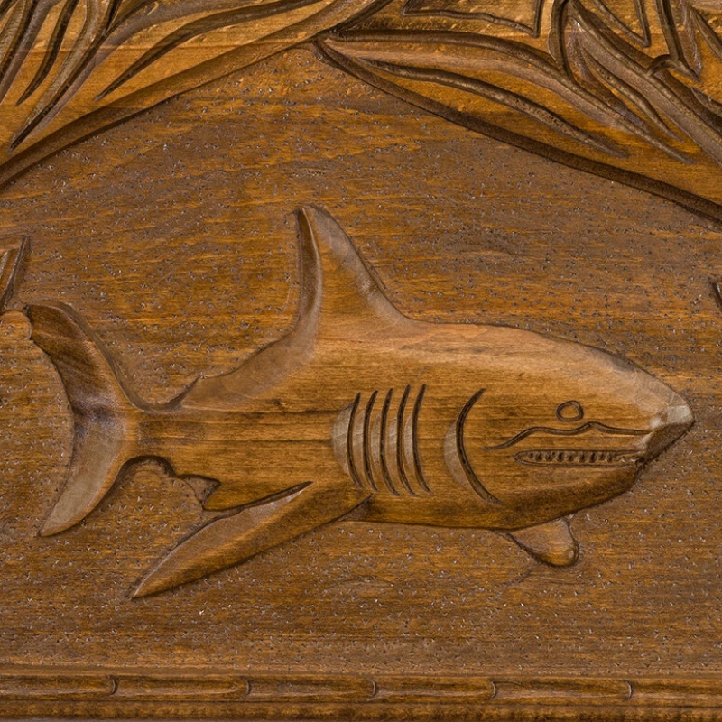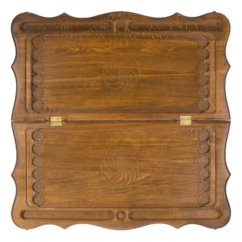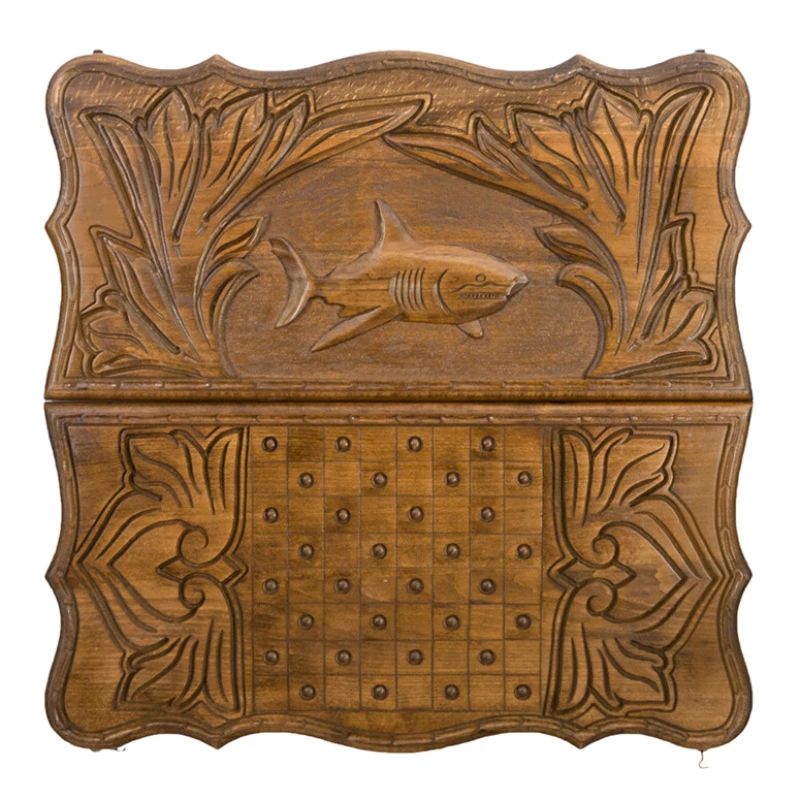 Приобретая себе нарды резные «Акула» вы получаете не просто поверхность для игры, а настоящее произведение искусства. Его созданием занимался лично мастер из Армении Саркис Петросян, который приобрел известность благодаря отличному сочетанию качества и цены своих изделий. Материалом изготовления служит орех, что позволяет не беспокоиться о прочности и долговечности – они здесь на высоте. На лицевой стороне выгравировано изображение устрашающего морского хищника, а задняя украшена узором в виде листьев, которыми окружено поле для игры в шашки. Внутри, помимо геометрической резьбы, предусмотрены специальные углубления для фишек, что повышает удобство при игре. Сами фишки также идут в комплекте.