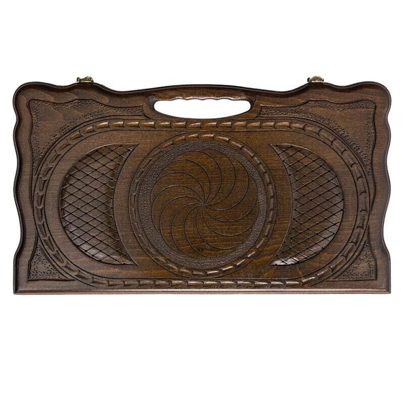 Дерево покрывается лаком, что не только улучшает технические характеристики, но и придает блеска. Нарды резные Бесконечность украшены изысканным узором, нанесенным с обеих сторон доски. В середине находится круг, разделенный на сектора, и когда смотришь на них, впадаешь в некое подобие гипноза, будто наблюдаешь за течение воды или горением огня. Все выполнено очень детализировано и даже если придираться, вы не найдете каких-либо изъянов.
