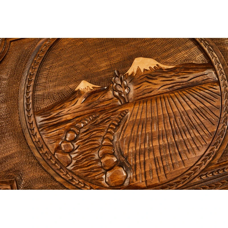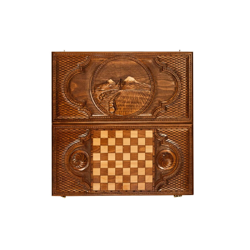 Нарды резные «Долина Арарата» 60 Simonyan - антураж Армении для длительных партий. Все творения Арама Симоняна славятся своей красотой, от того и получили широкую популярность. В этот раз автор оформление навеяно мотивами родной Армении, её шикарными просторами, безграничными равнинами, гордыми горами.
