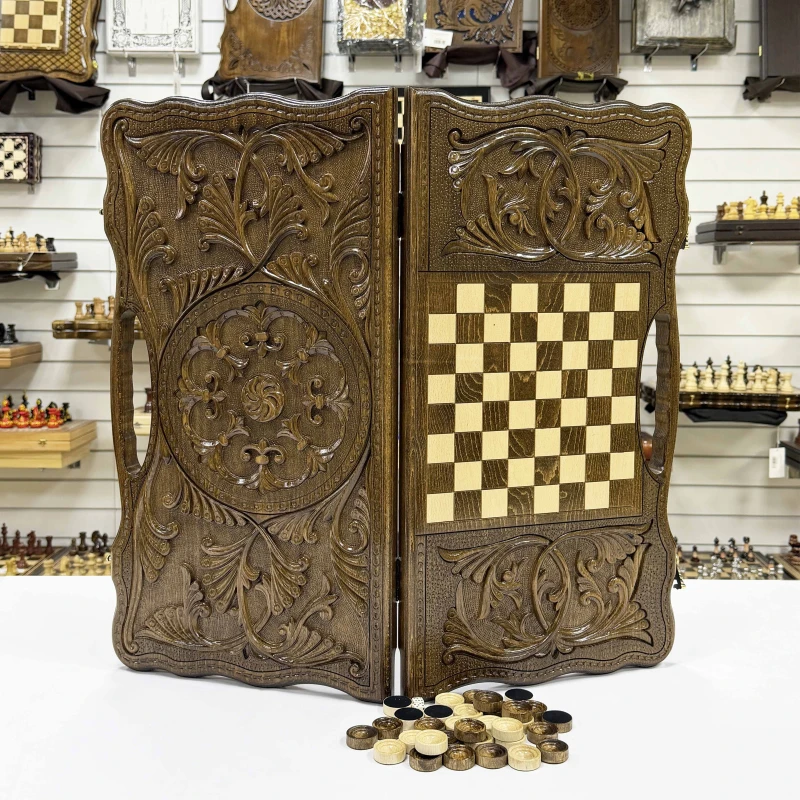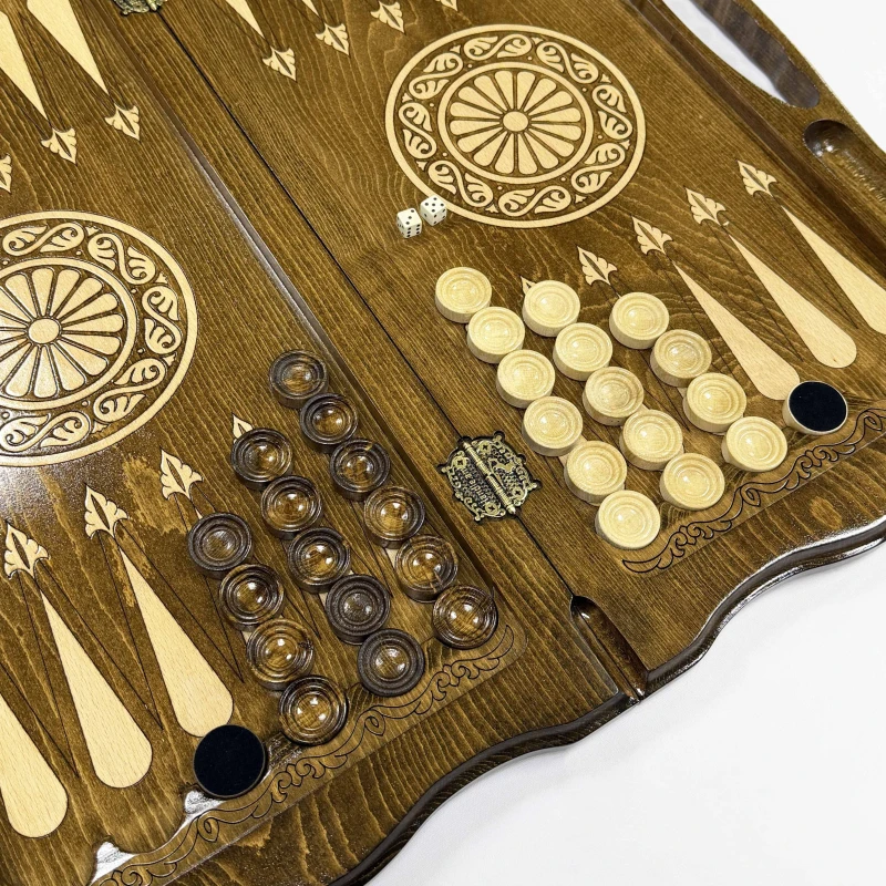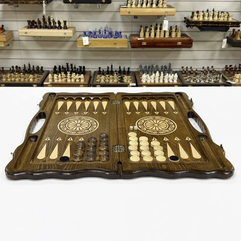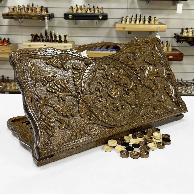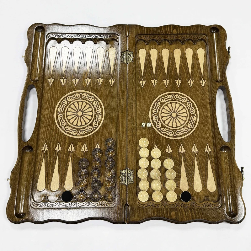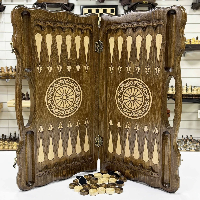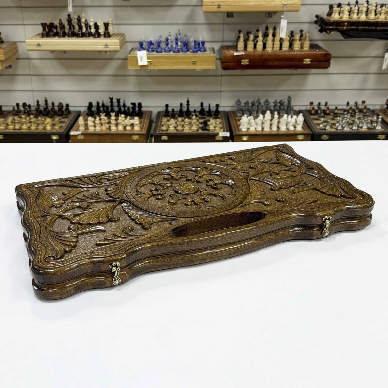 Нарды резные из массива бука с ручкой Восточный цветок 60 см