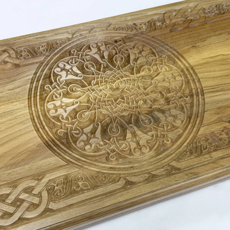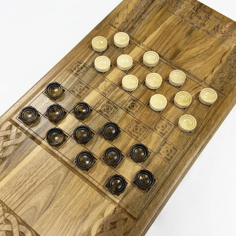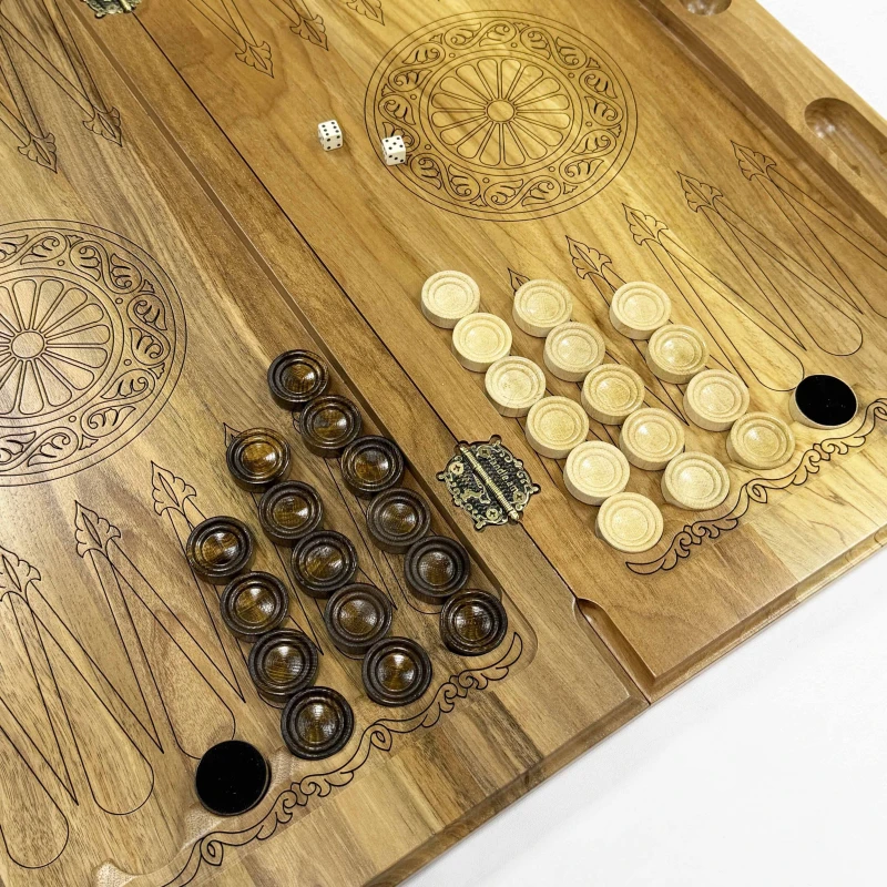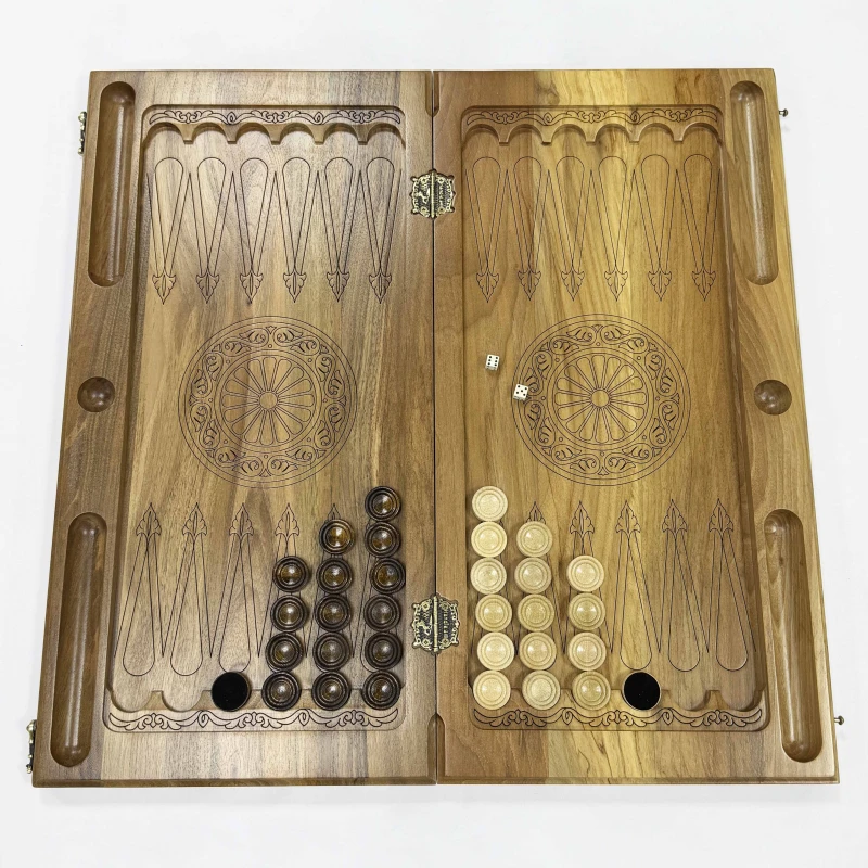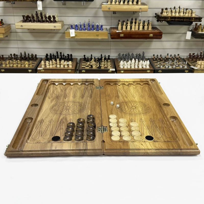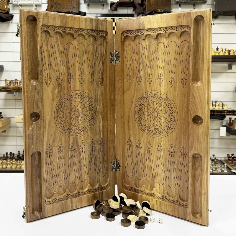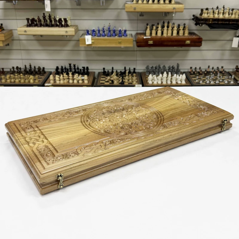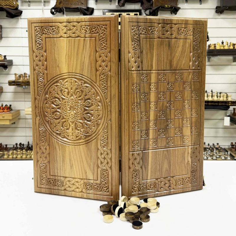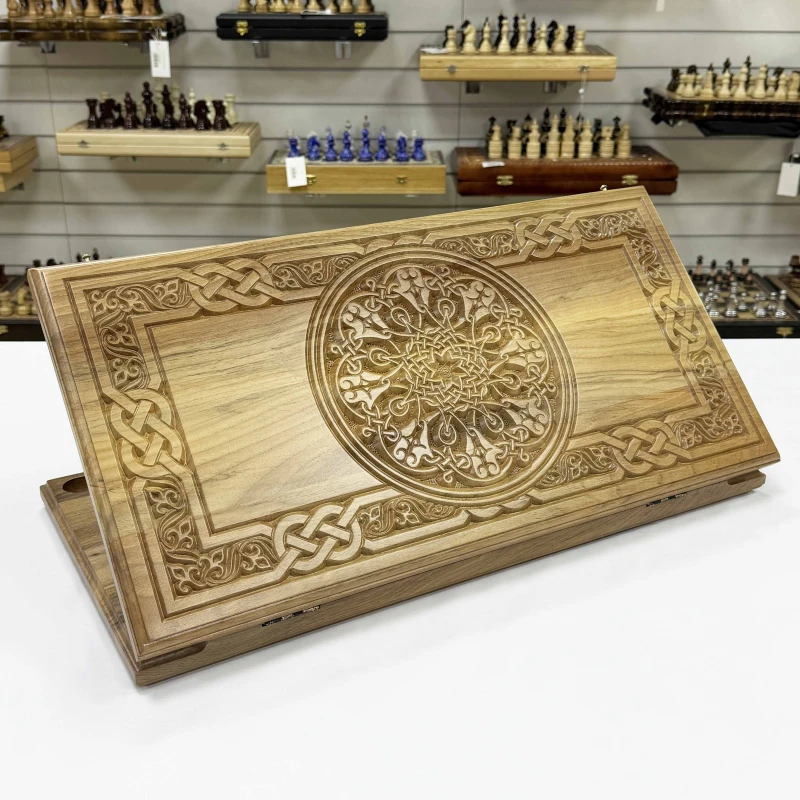 Нарды резные из массива ореха Орнамент 60 см с чехлом
