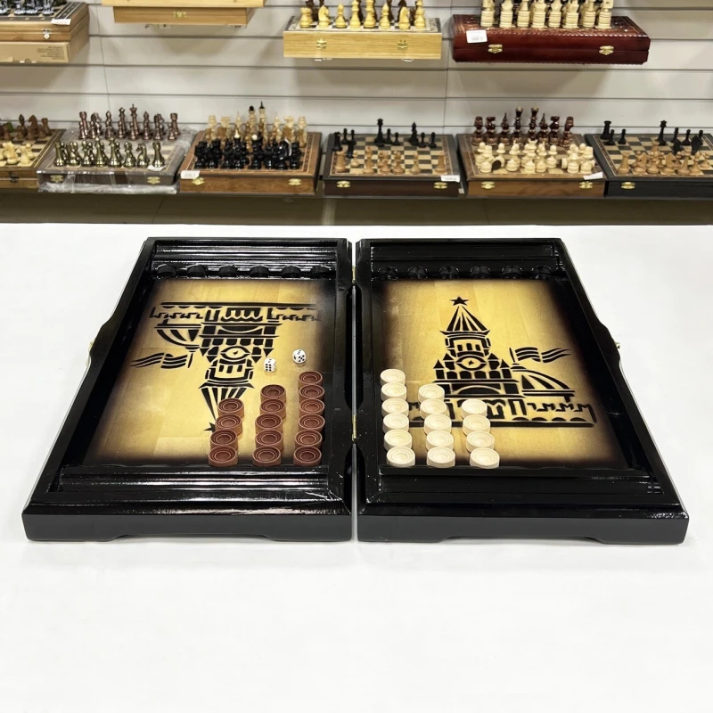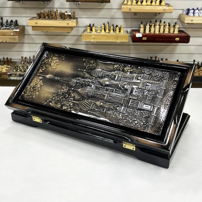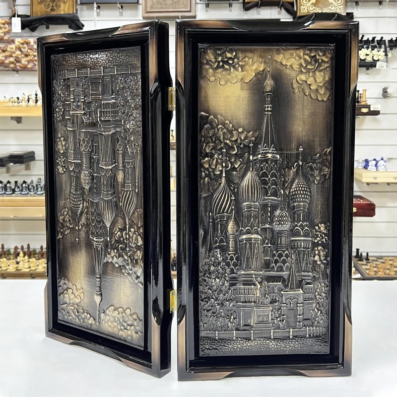 Представляем вам нарды из массива липы и стекла - Собор, которые станут изысканным дополнением вашей коллекции настольных игр. Размеры в раскрытом виде составляют 58 х 58 х 4 см, что делает их удобными для игры и демонстрации.