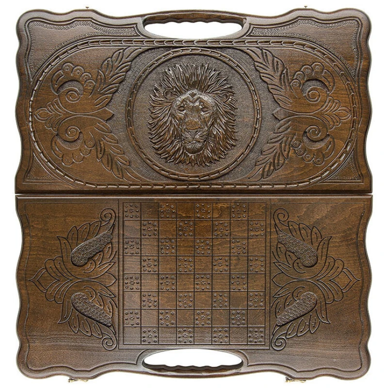 Нарды резные "Лев 2" с ручкой 60, Haleyan