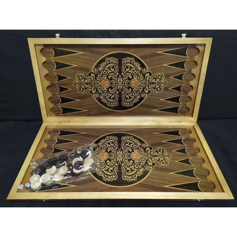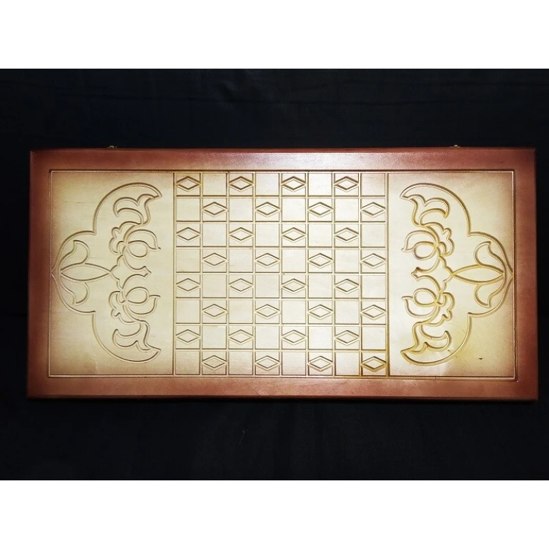 Классические нарды из дерева с гравировкой. Есть поле для шашек. В комплекте игральные кости и фишки. Производство Россия.