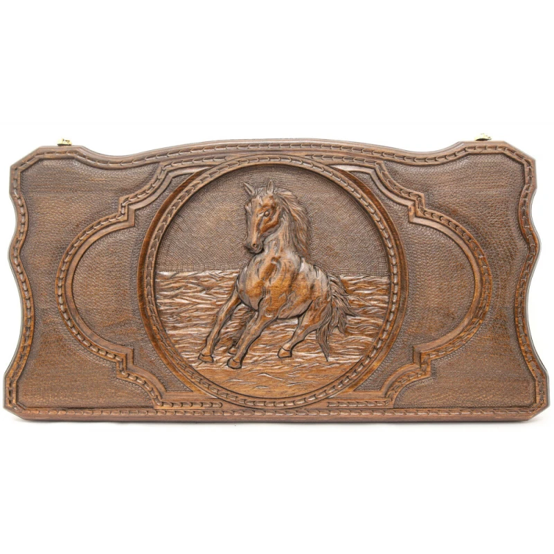 Что в коробке? Доска; защитный чехол; 32 фишки; 2 шестигранных кубика. «Лошадь 2» – уникальный набор подарочных нард, который сделан одним из самых известных современных мастеров. Изделие выполнено из благородной буковой древесины. Доска украшена детализированным резным изображением лошади в движении. Величественное животное подчеркивает статус и презентабельность этого набора. Витиеватые абстрактные узоры дополняют общую картину и подчеркивают общую идею. От появления царапин доску защищает глянцевый лак по всей поверхности, а также бархатные подложки на каждой фишке. Фурнитура из настоящей мели крепка, надежна, устойчива к износу, поэтому использовать этот набор для игры можно часто и без опасений.