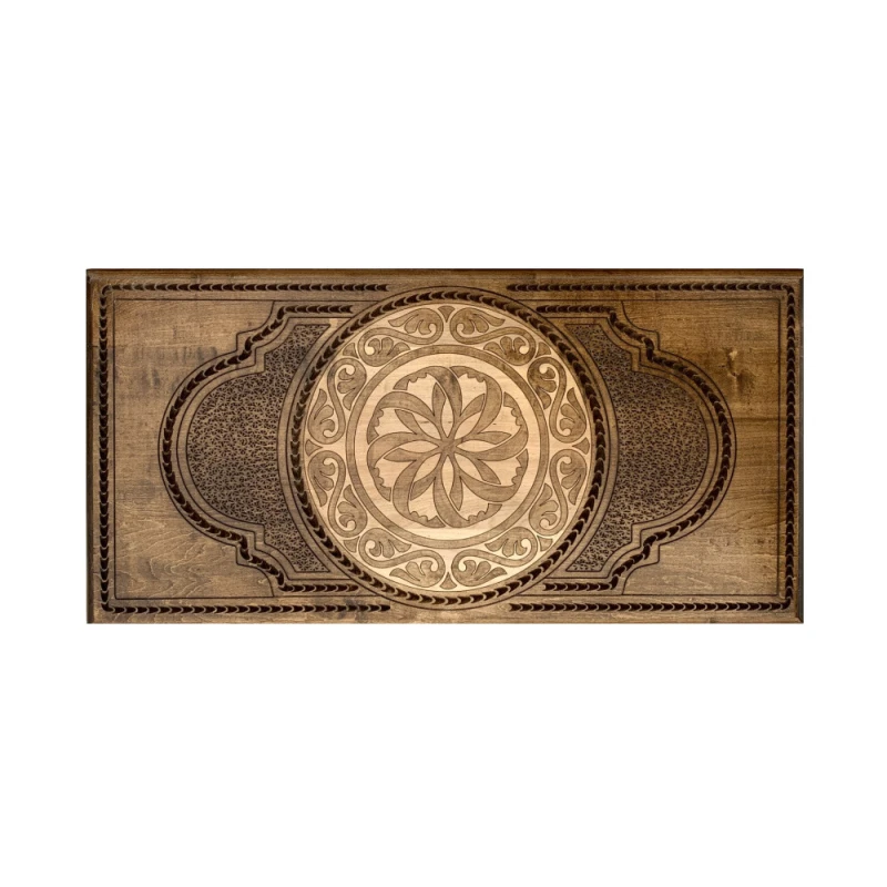 Зачем довольствоваться обычными поверхностями для игр, которые можно найти в каждом магазине, если есть возможность недорого купить нарды резные «Майрамут 3». Уже одно то, что за изготовление отвечает лично Вартан Закарян, известным своей внимательностью к деталям, говорит о многом. Это доска для достойных людей, которые ценят качество, красоту, стиль, и хотят владеть только лучшими из доступных вещей. Сделаны они полностью из бука, что автоматически гарантирует прочность и длительный период использования. Лицевая поверхность украшена мелким орнаментом, в центре которого располагается интересный символ. Внутри ячейки подчёркнуты узором, как и середина поверхности, а по бокам присутствуют углубления для фишек. В комплекте имеется мягкий чехол, который не позволит повредить доску в автомобиле, при переносе и так далее.
