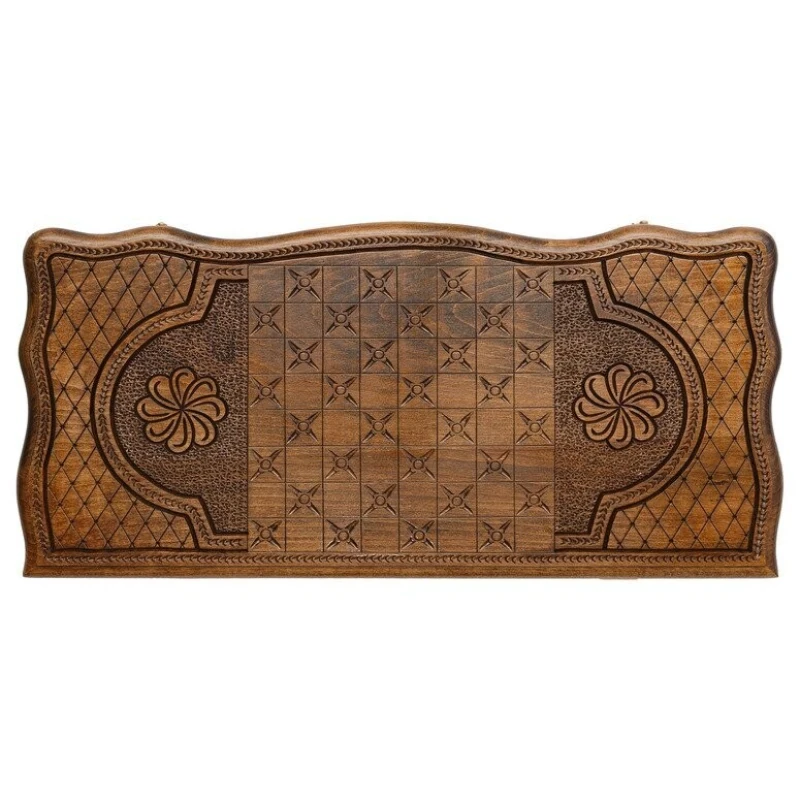 Нарды резные "Охота" - это стильный и качественный игровой набор, который станет отличным подарком для ценителей настольных игр. Нарды выполнены из натурального материала - бука, что придает им элегантный и роскошный вид. Фишки имеют диаметр 2.8 см и резные узоры, что делает внешний вид более интересным и привлекательным. Размер клетки составляет 3 см, а каждая фишка имеет подложку для удобства перемещения.