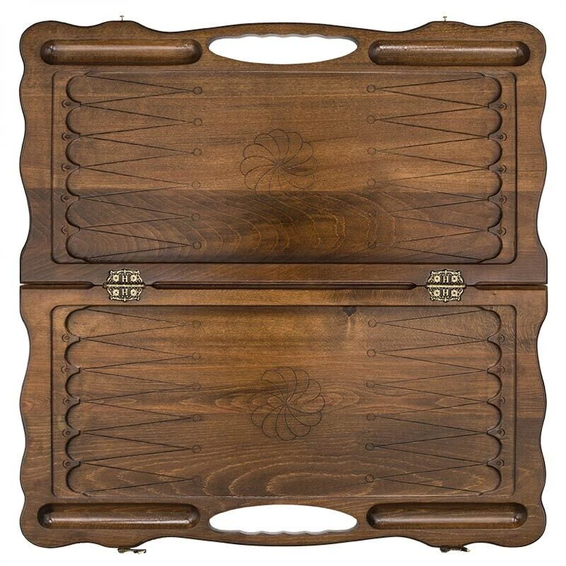 Мастер предусмотрел возможность носить нарды с собой и вырезал удобную ручку сбоку доски. К тому же, в комплекте имеется чехол, достаточный, чтобы защитить это «творение» от пыли, грязи и брызг. В случае падения или удара она тоже не пострадает, т.к. чехол из ткани и послужит хорошим амортизатором.