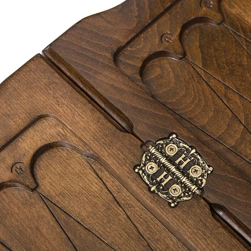 Мастер все изготавливает вручную из прочного орехового дерева. Благодаря такому подходу сохраняется прекрасная фактура, ведь это не какое-то там ДСП, МДФ или пластик. Один только звук, когда игральная кость катится по деревянной поверхности, уже станет приятным дополнением к увлекательной игре.