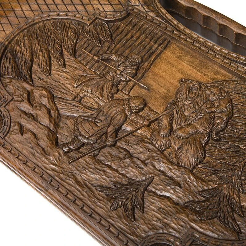 Раньше, мастера, которые умели изготавливать качественные доски, ценились очень высоко, а их работу оплачивали золотом и восточными шелками. Сейчас же их стало намного меньше, но преуменьшать их заслуги нельзя. Одним из них является Карен Халеян, чьи Нарды резные Охота на медведя вы и можете приобрести.