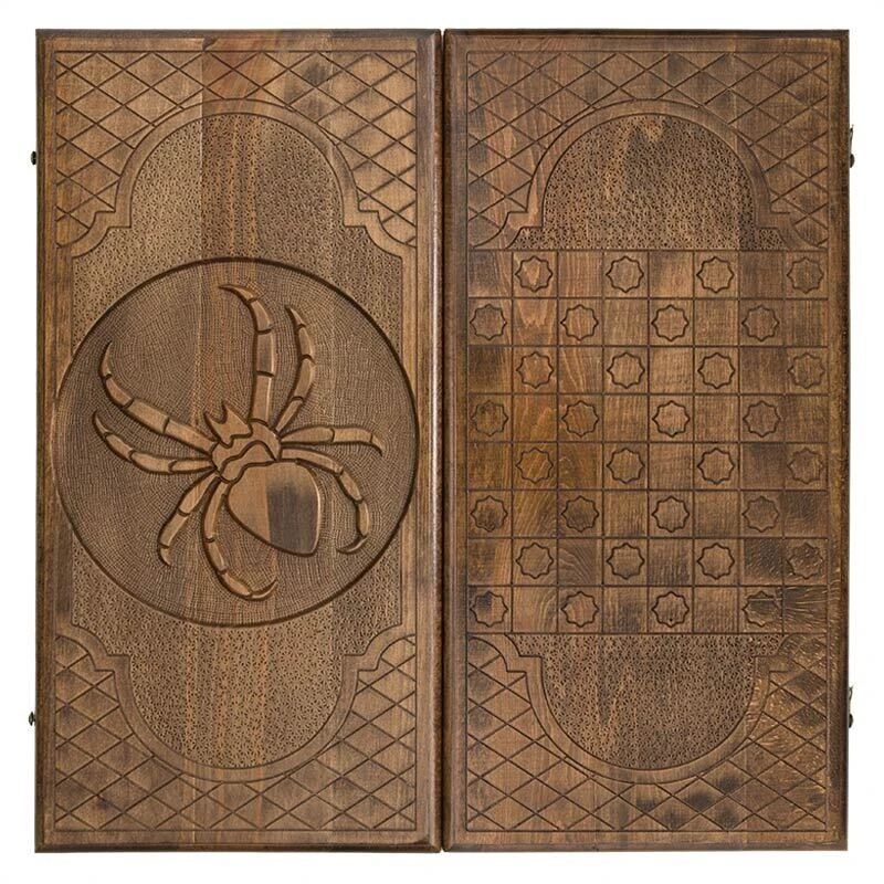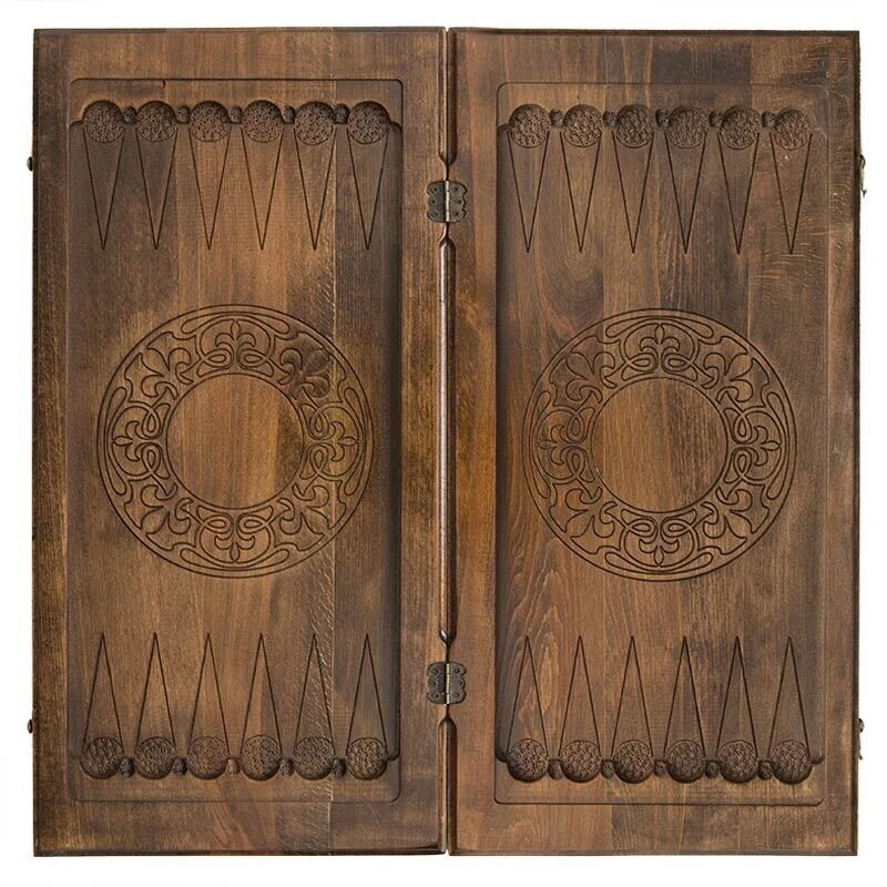 Резные нарды ручной работы. Производство Армения. В комплекте игральные кости, чехол и фишки. Нарды сделаны из массива ореха.
