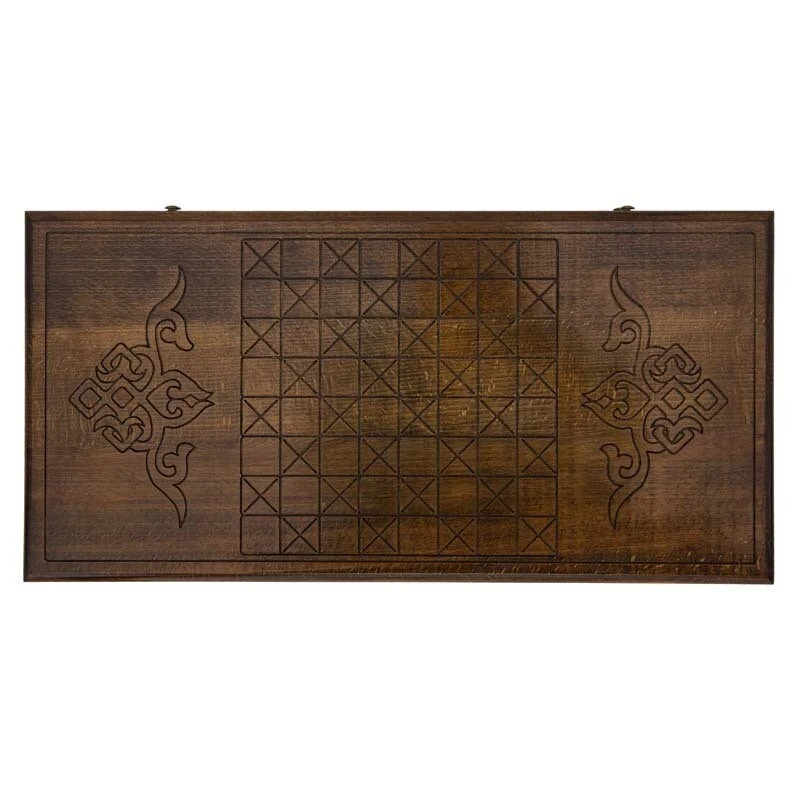 В комплекте с доской есть всё, что понадобится для начала партии – 32 фишки и 2 игральные кости. Кроме того, имеется специальный чехол из мягкой ткани, который защитит во время транспортировки, а также поможет при длительном хранении.