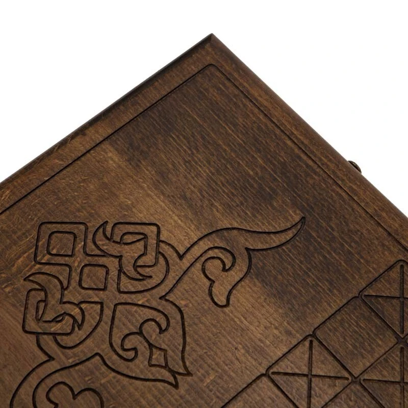 В нардах резных "Строки из Корана" Русалова используется долговечный и прочный бук, покрываемый сверху несколькими слоями лака. Это необходимо, чтобы обеспечить некоторую степень влагозащиты, повысить выносливость и придать внешнему виду еще больше благородства.