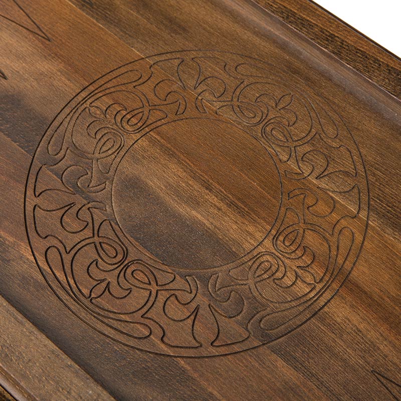Также на игровой доске предусмотрено поле для шашек, что позволяет расширить ассортимент игр. Размер нард составляет 62 см, а вес - 4.90 кг, что делает их очень удобными для игры, и понравится людям которые не любят настольные игры маленьких размеров. Нарды резные "Узор-1" - это отличный выбор для любителей настольных игр, которые ценят качество и стильный дизайн.