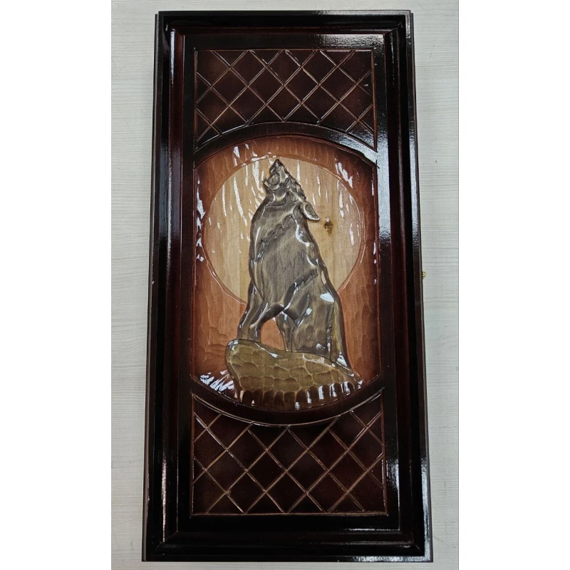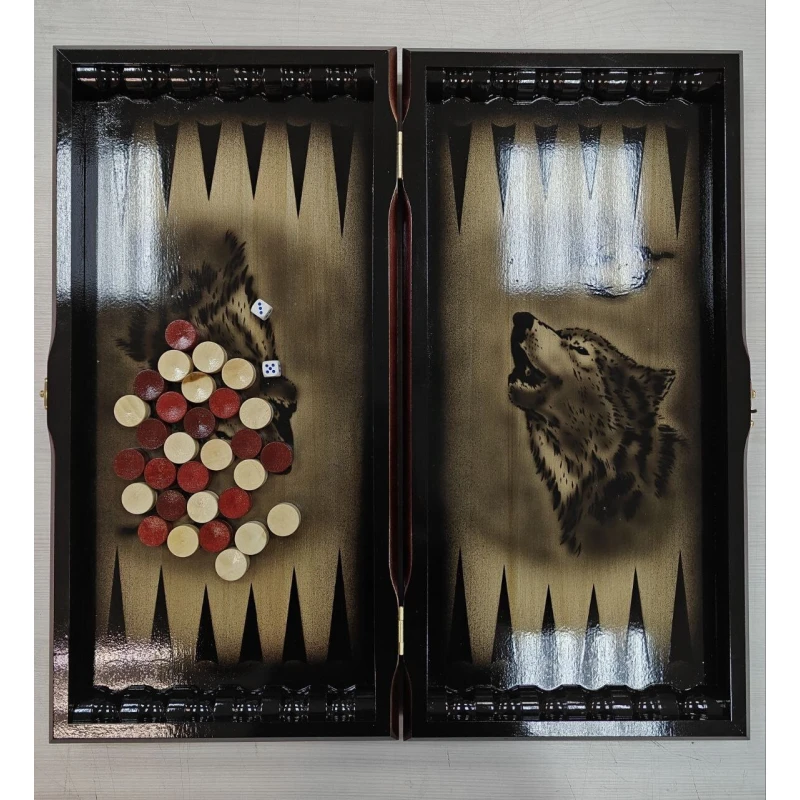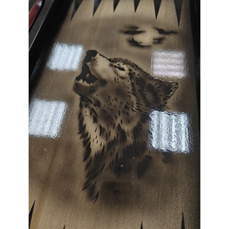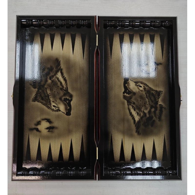 Большие нарды с рисунком волка ручной работы