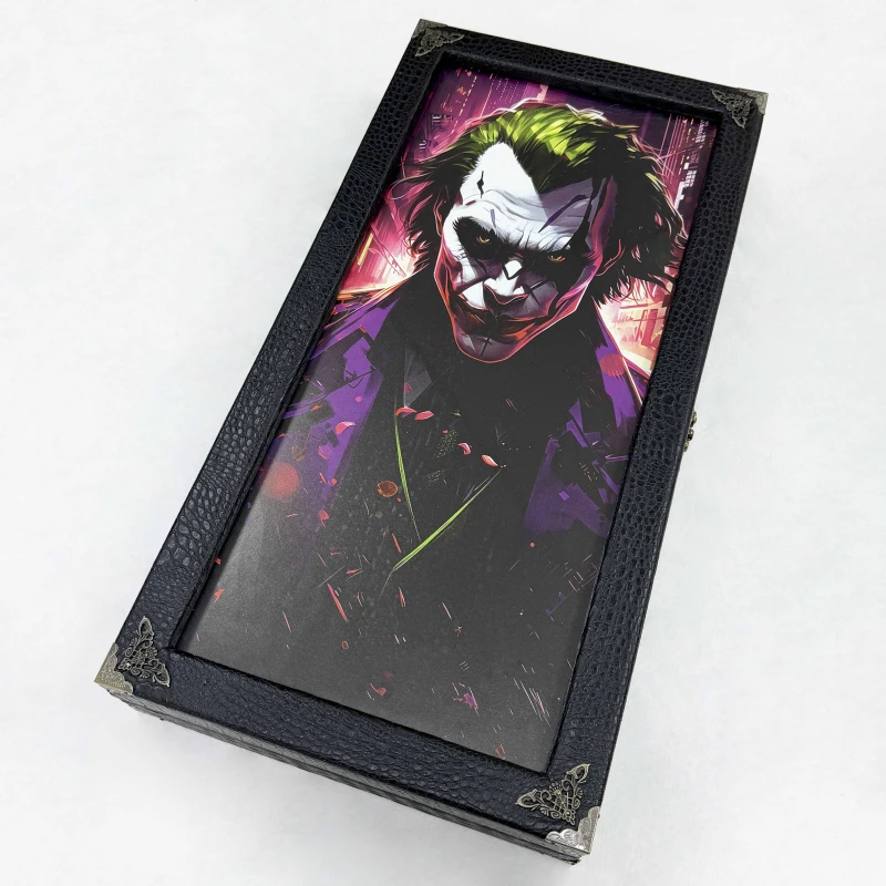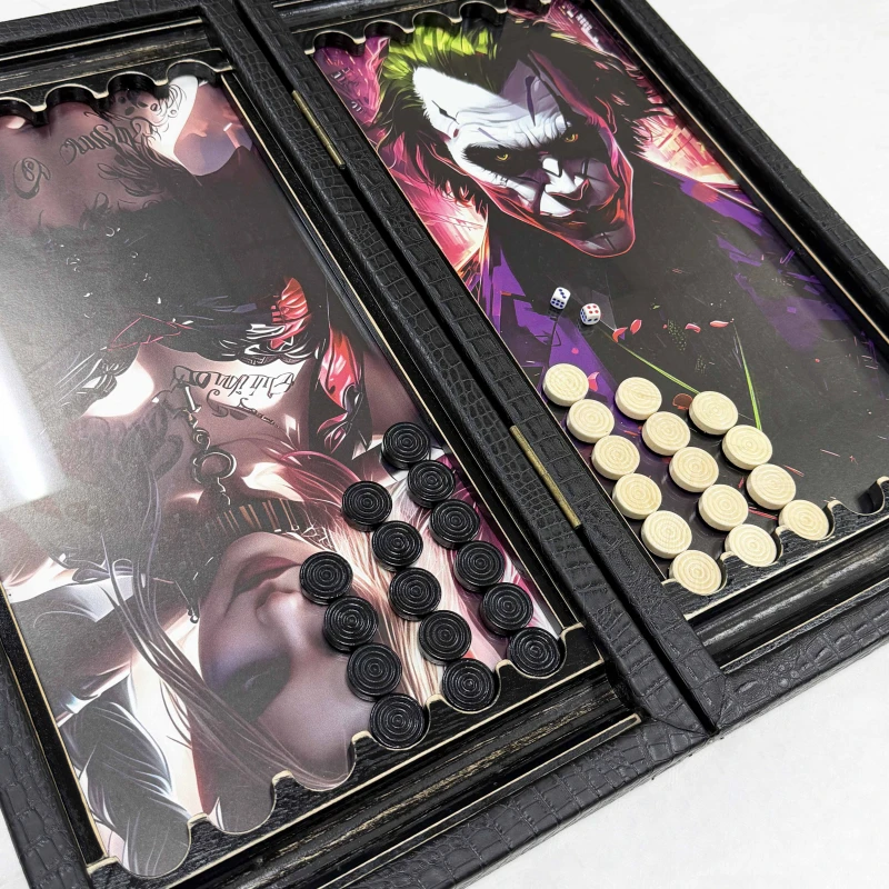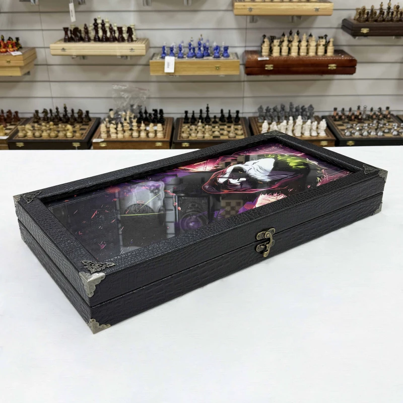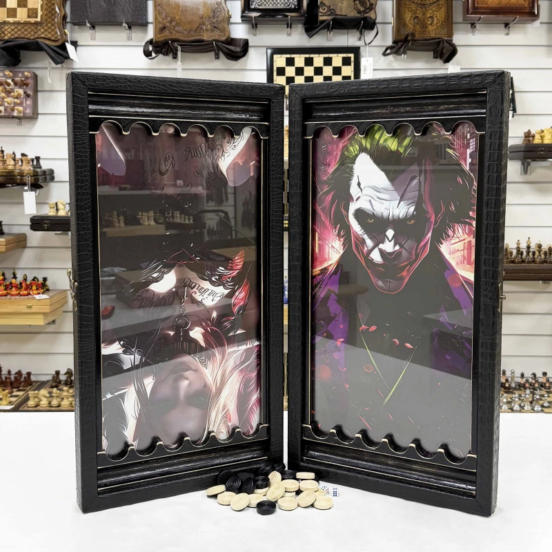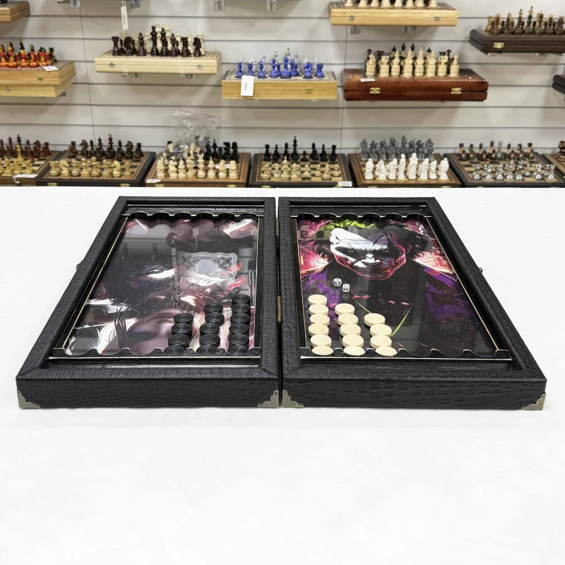 Подарочные нарды из массива липы и стекла с рисунком Джокера, которые станут изысканным дополнением вашей коллекции настольных игр. Размеры в раскрытом виде составляют 60 х 60 х 4 см, что делает их удобными для игры и демонстрации.